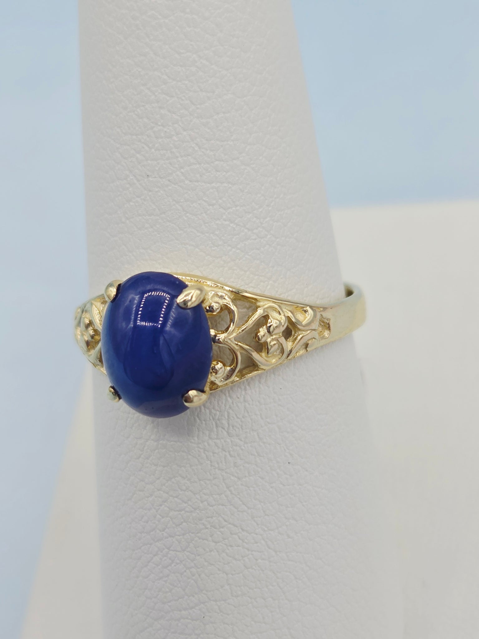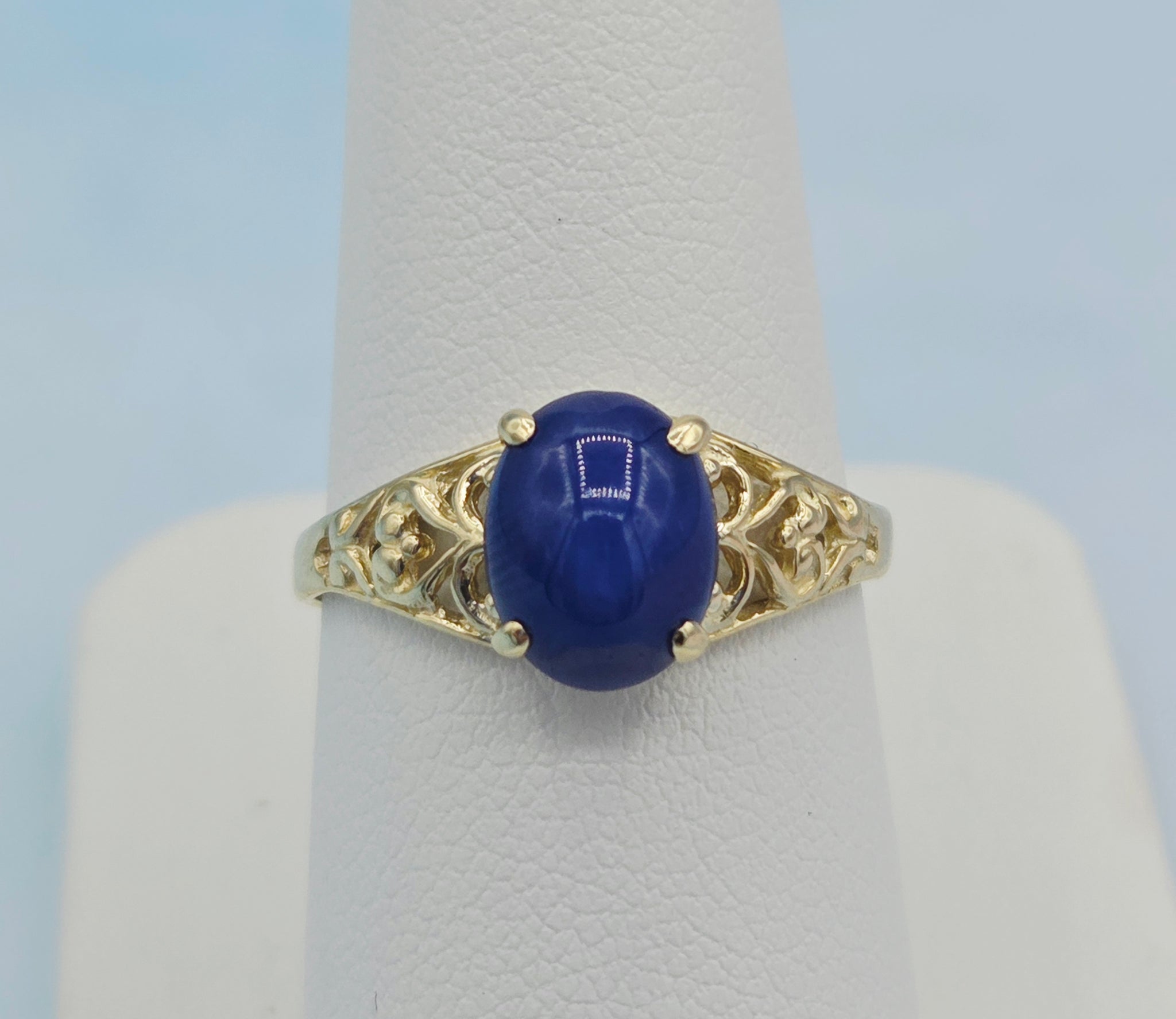 This ring features a Blue Star Sapphire. 14K Yellow Gold