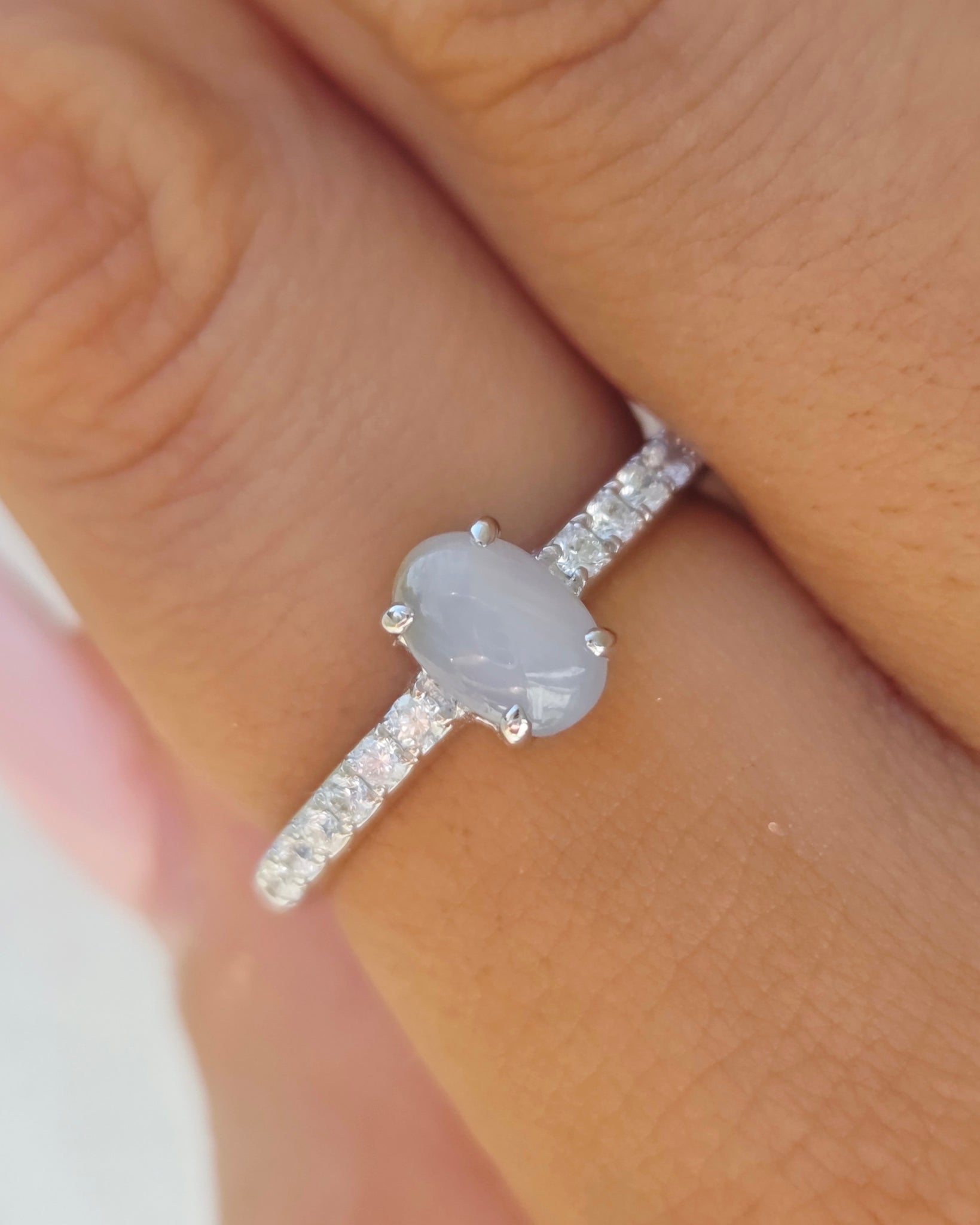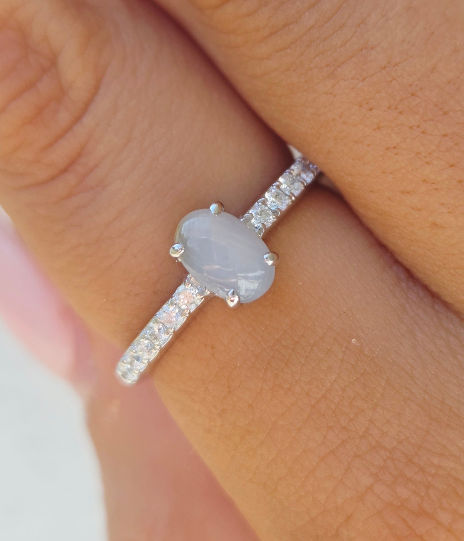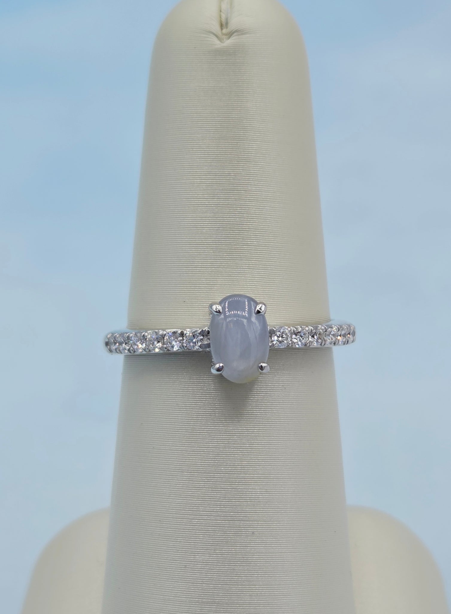 This ring features a 1.08 Carat Star Sapphire and .16 Carats in Diamonds.Â