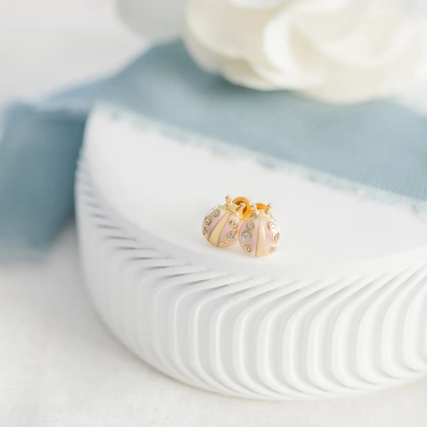 These adorable pink ladybug earrings are the perfect addition to your little one's jewelry collection. Crafted from high-quality gold-plated (over sterling silver), each earring features a sweet ladybug design, beautifully enhanced with sparkling accents. With a secure screw-back closure, these earrings are specially designed for babies, toddlers, and little girls, ensuring they stay comfortably in place and protect the backs of her delicate ears. 🌸Material: Gold-plated sterling silver, hypoallergenic, and nickel-free – perfect for sensitive ears. 🌸Screw backs: Keeps earrings secure and protect the backs of her little ears.