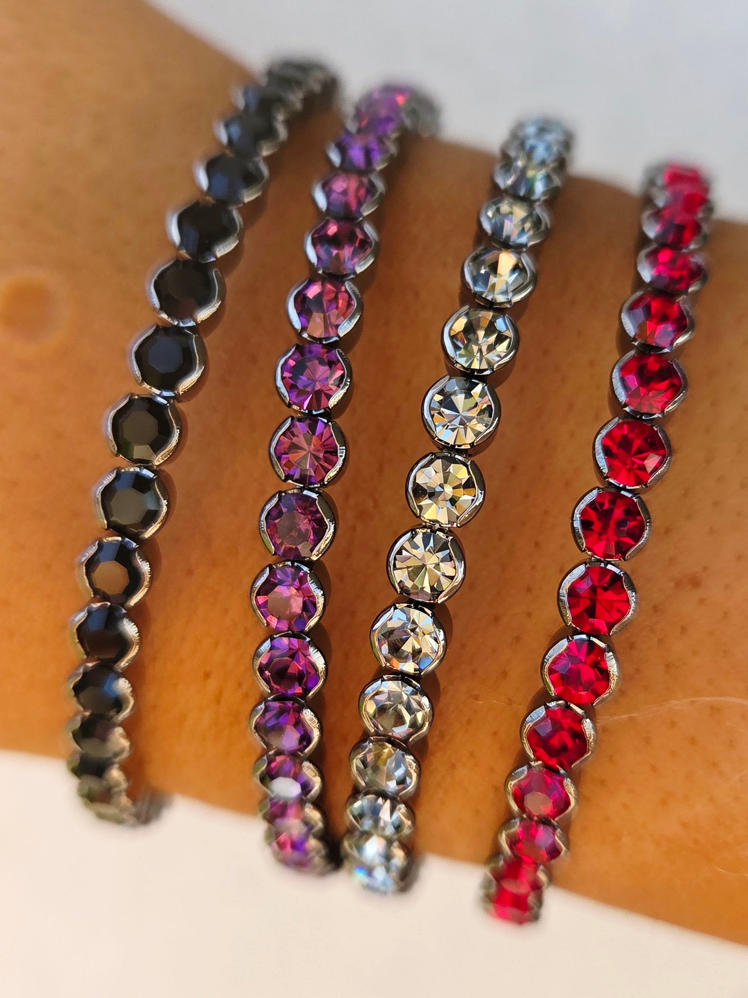 Hematite Rhinestone Flexible & Stackable Bangle Bracelet