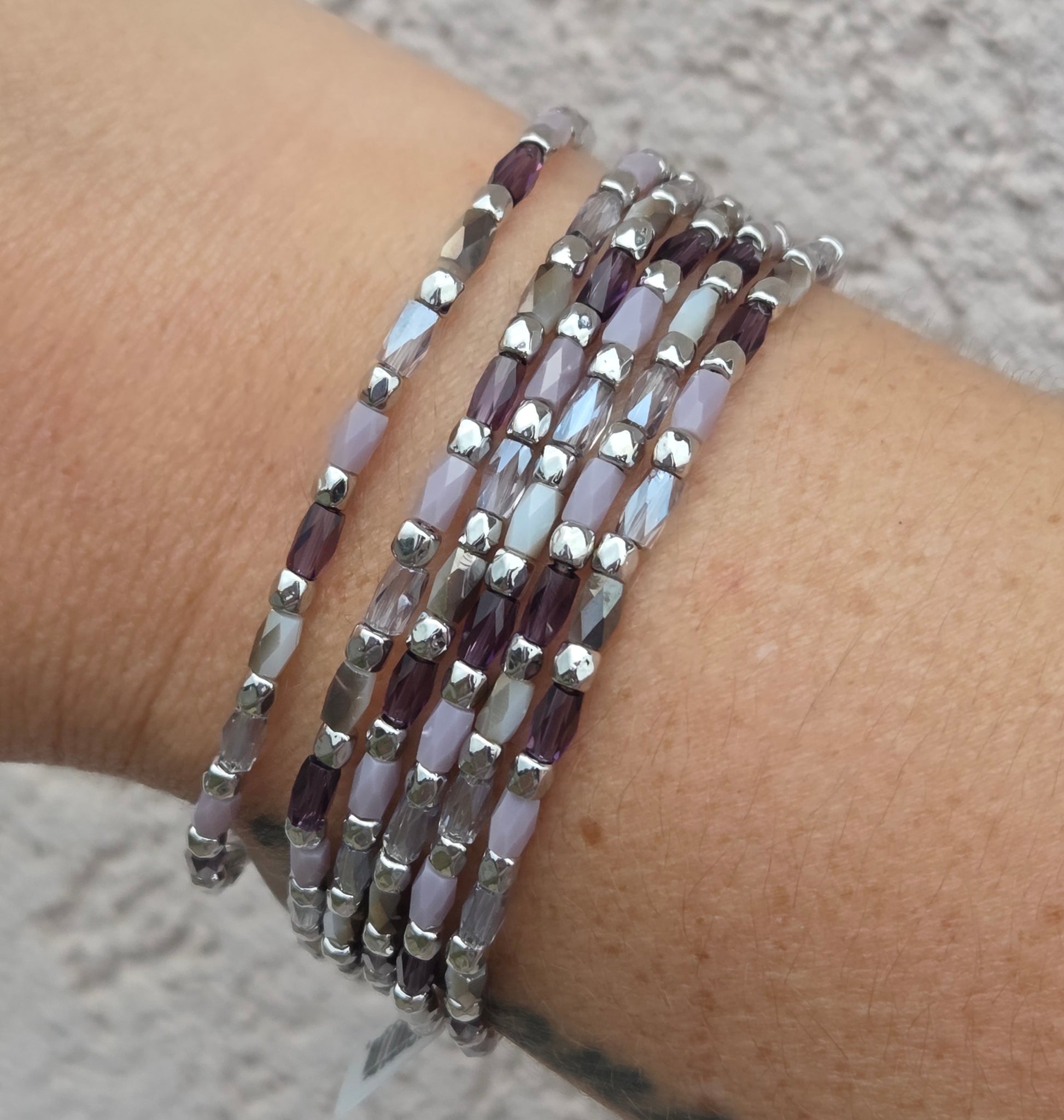 Crystal Mix - Purple & Silver Stretch Bracelet