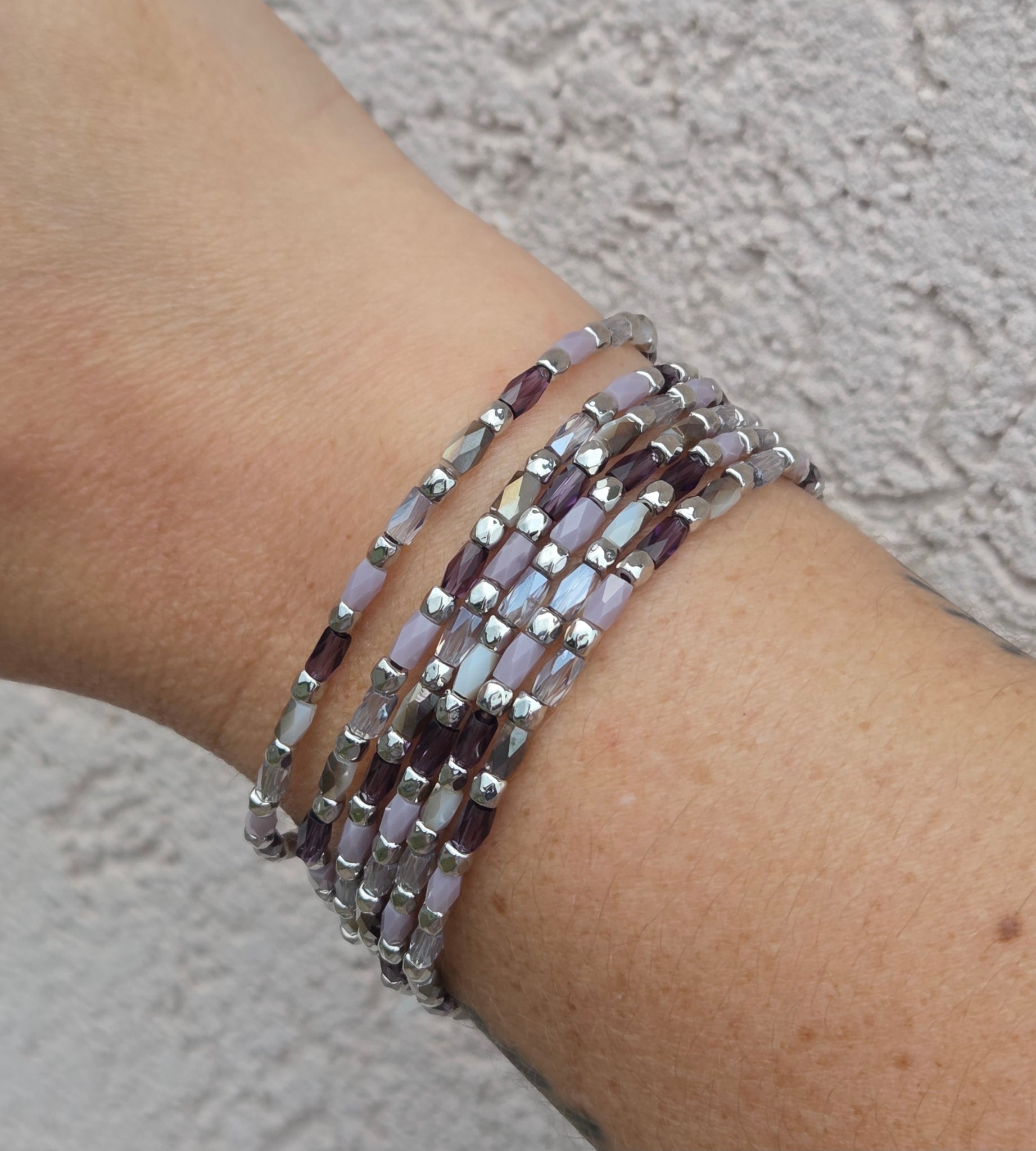 "Vivid Violets" Purple, Lilac & Silver Crystal Stretch Bracelet
