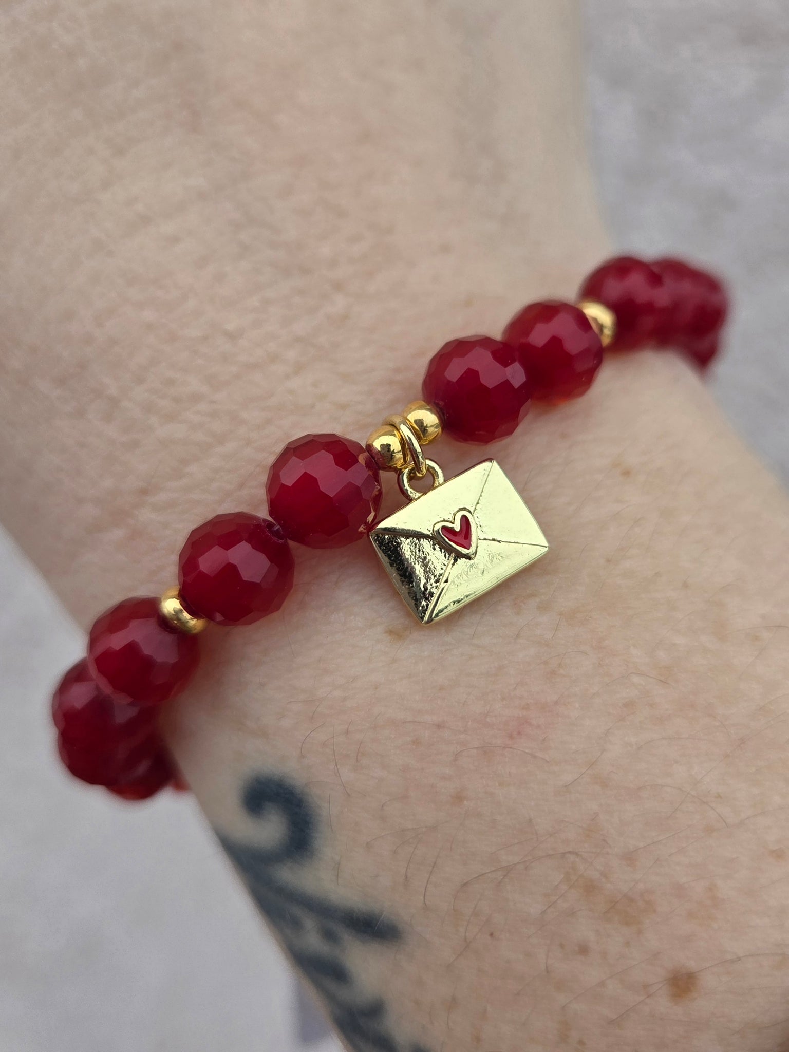 Love Letter on Candy Apple Sparkle Beaded Bracelet - Elena Michele