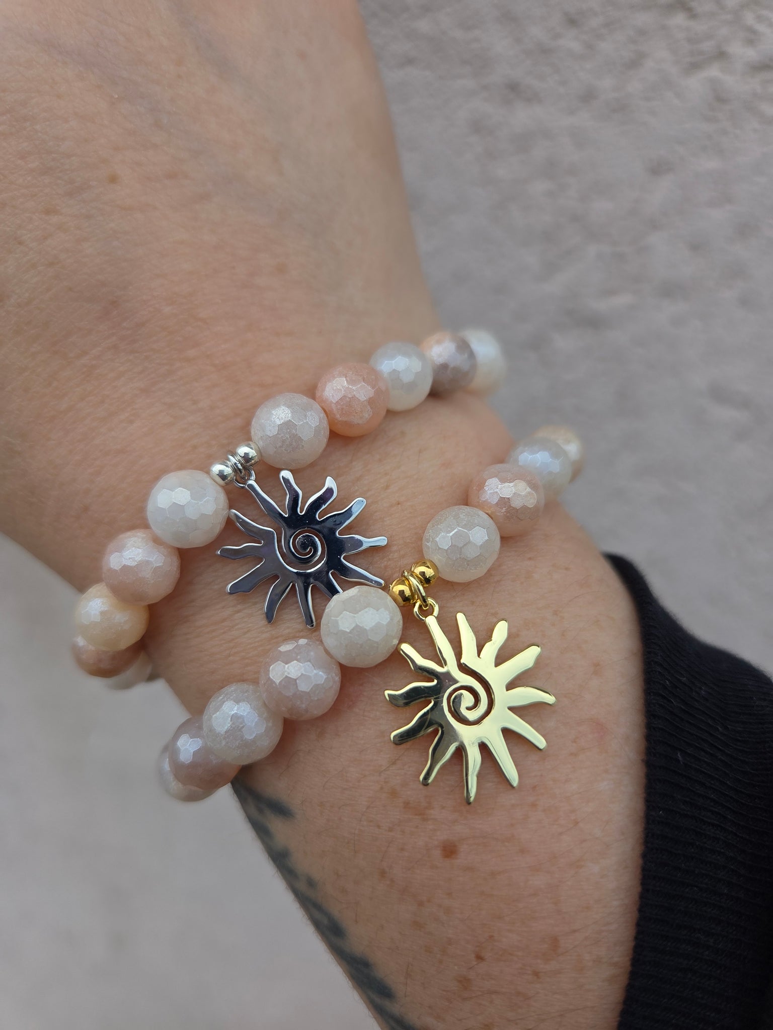 Tribal Sun on Aventurine Beaded Bracelet - Elena Michele