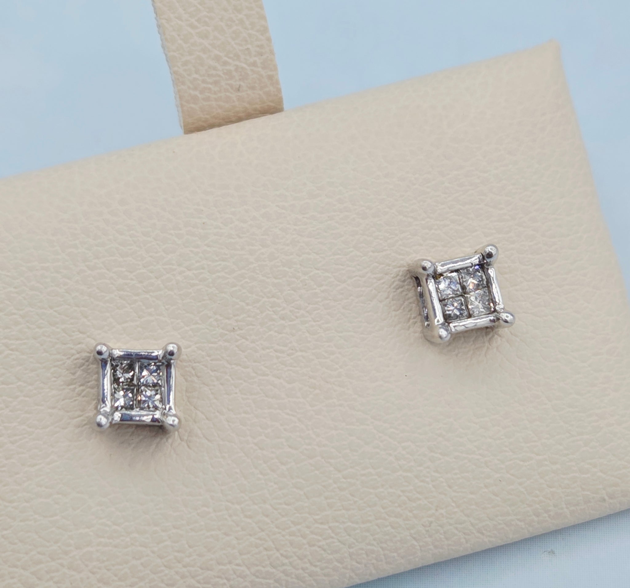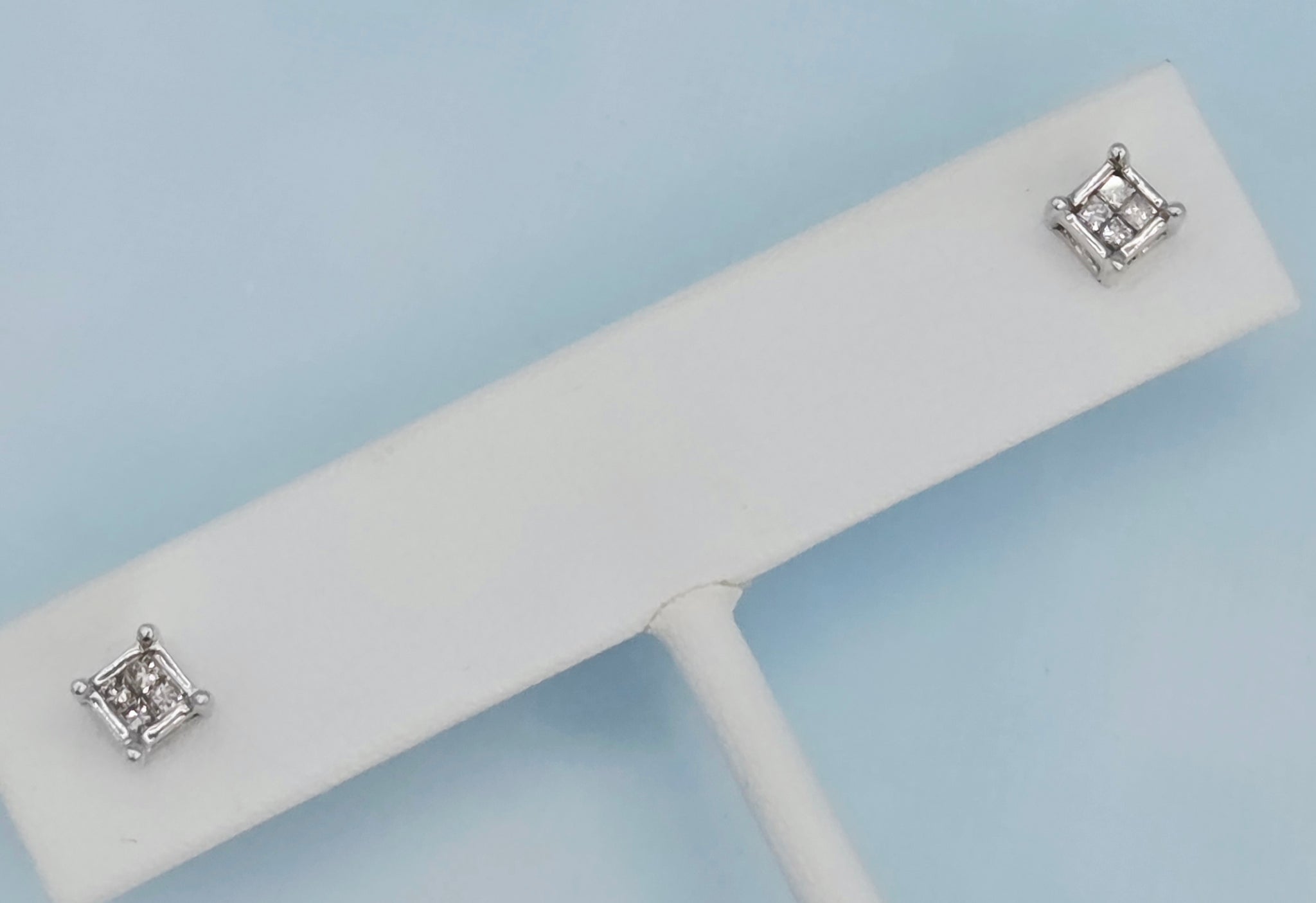 14K White Gold Diamond Stud Earrings with Illusion Setting