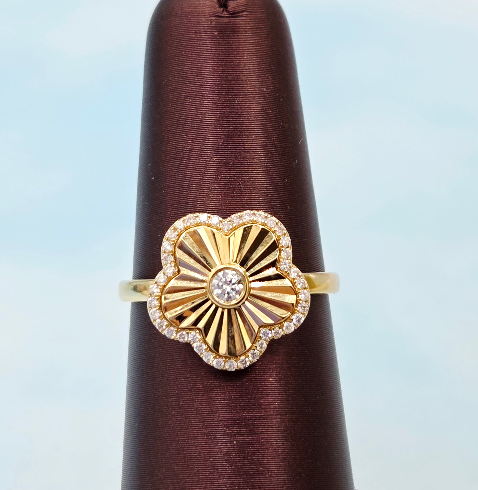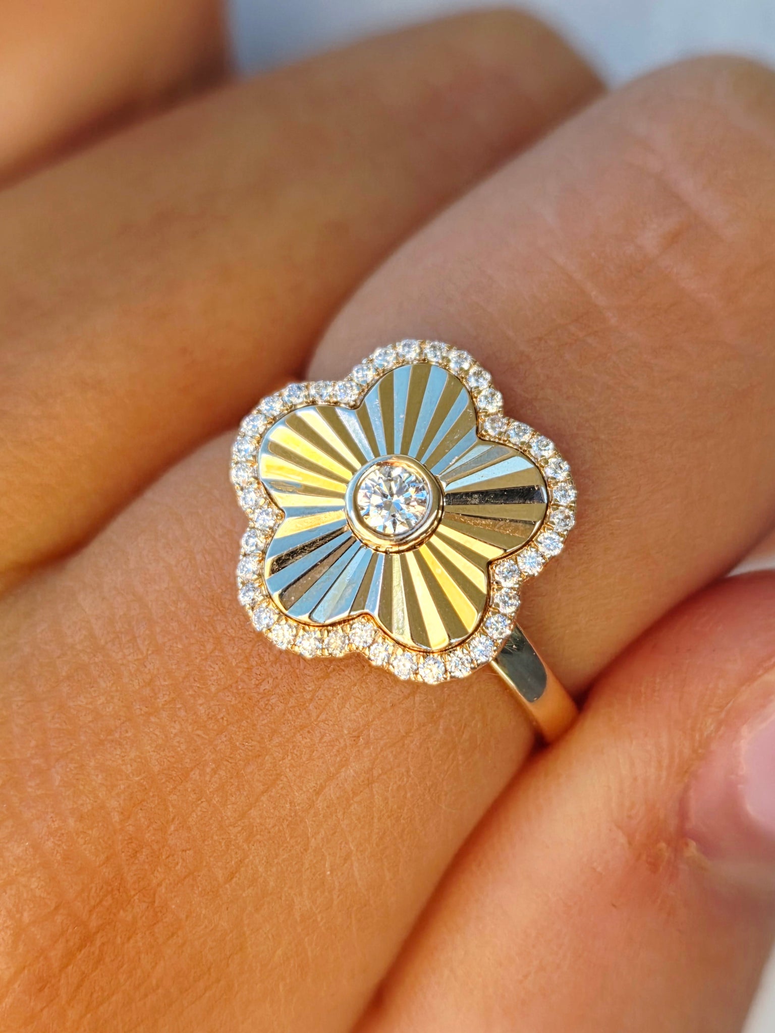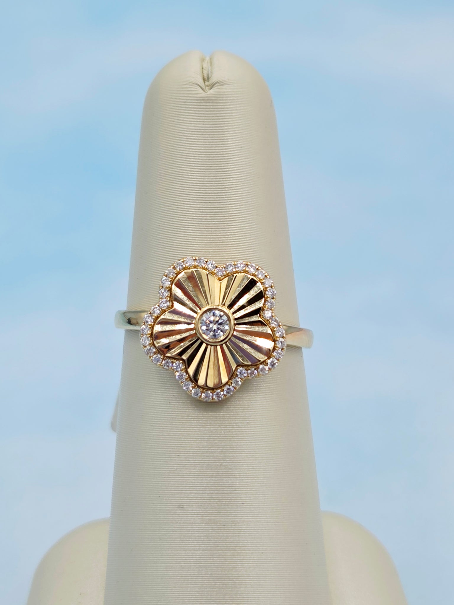 Diamond Fluted Clover Ring - 14K Yellow Gold