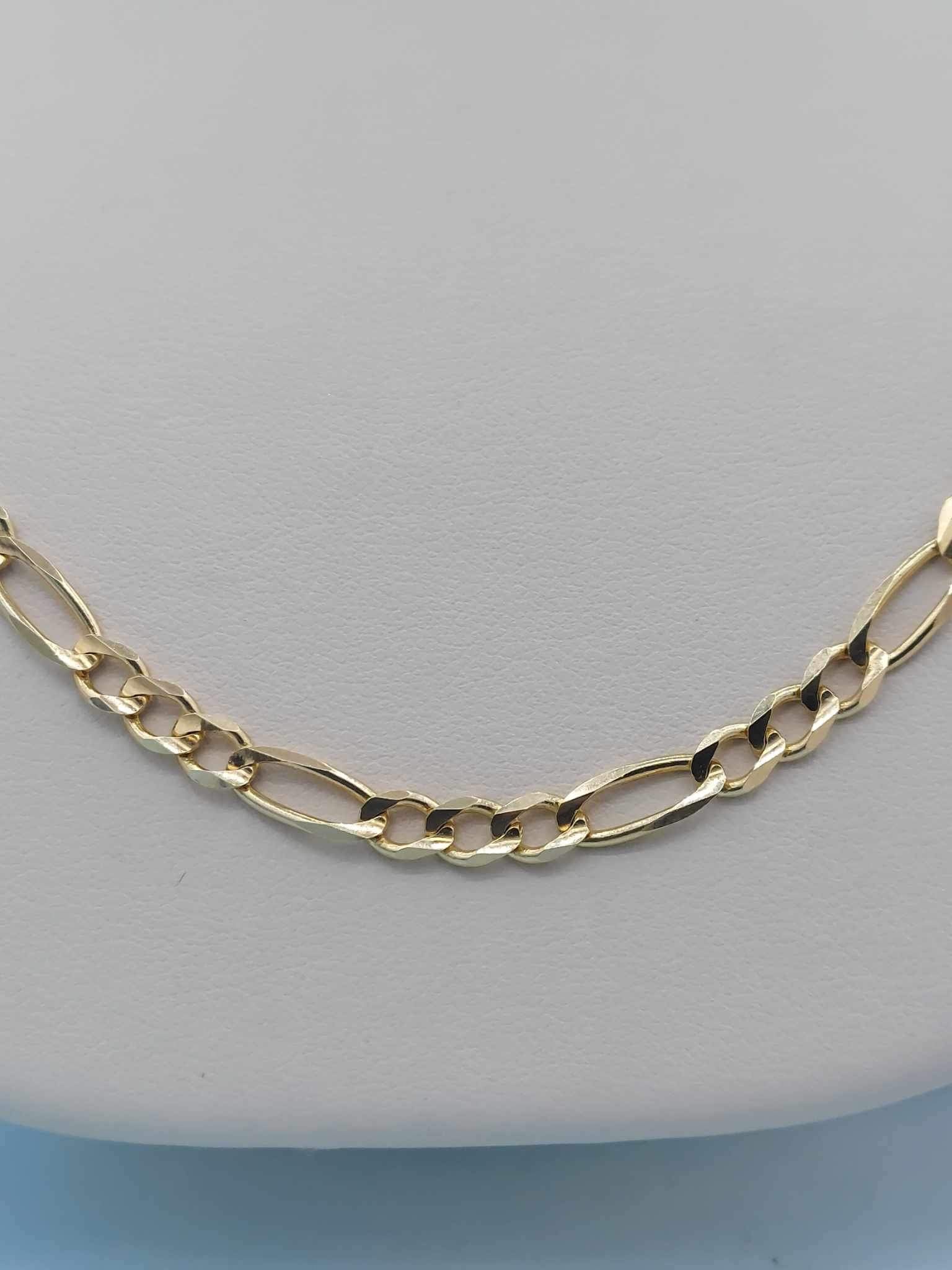 14K Yellow Gold Figaro chain.