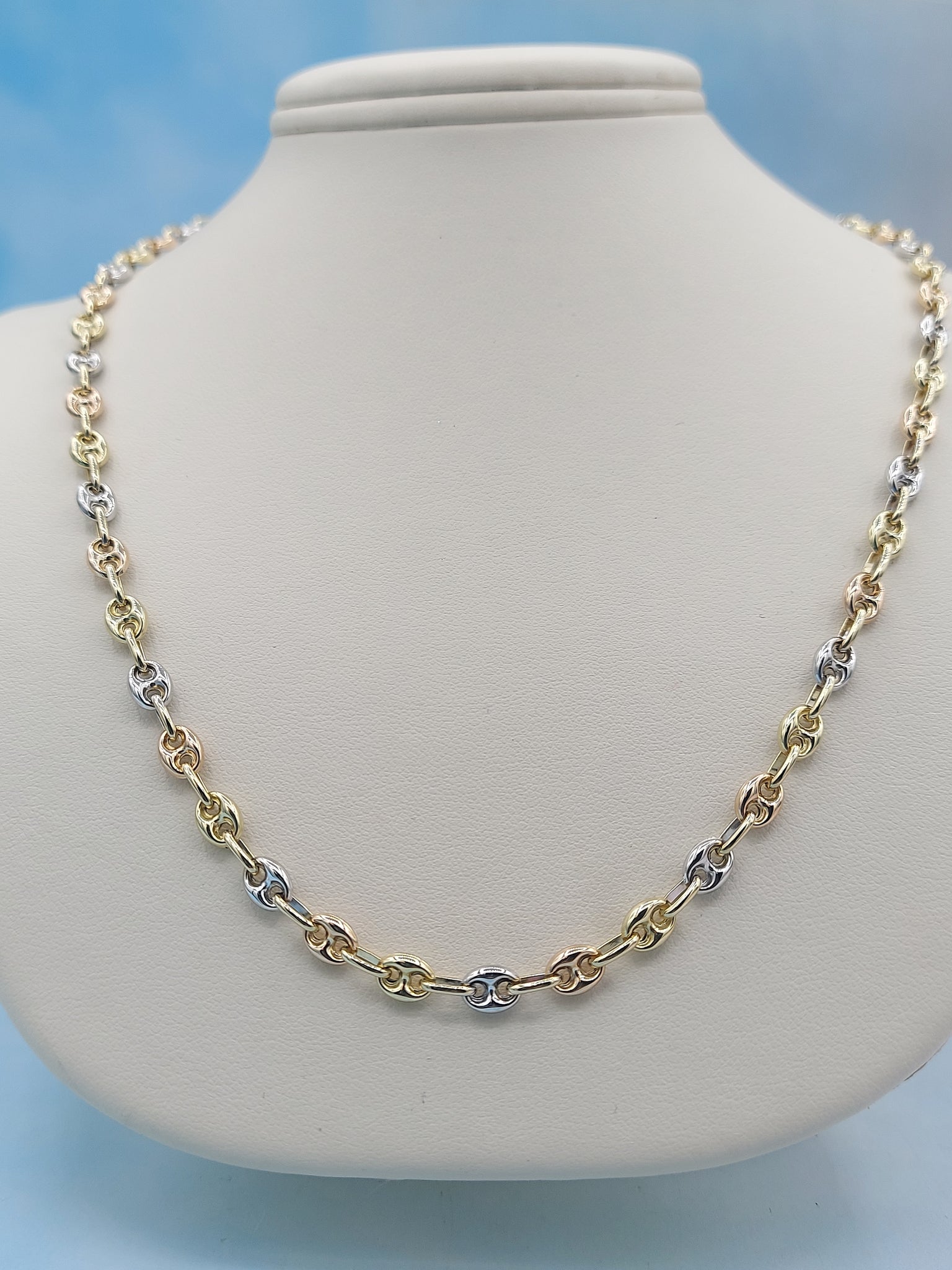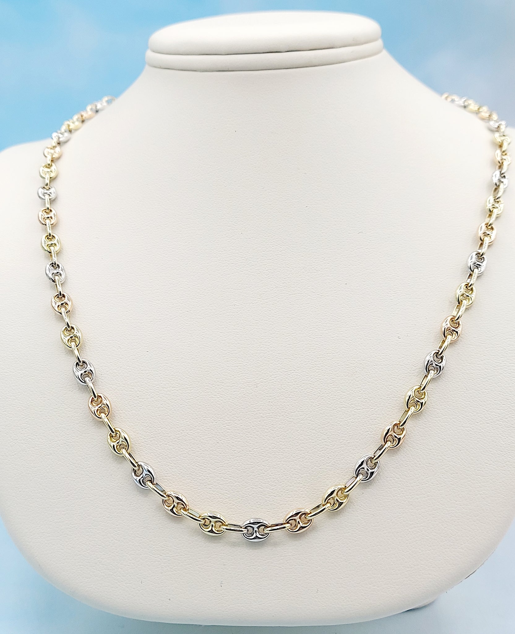 Tri Color Gold Puffed Mariner Link Chain - 14K