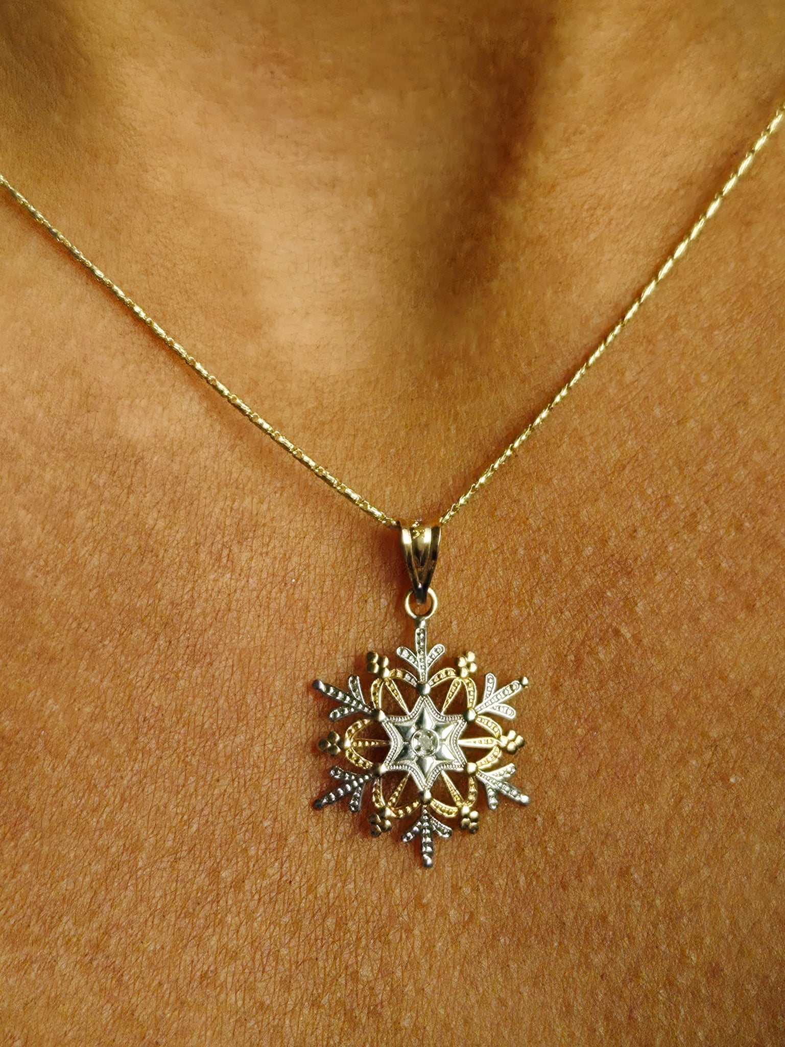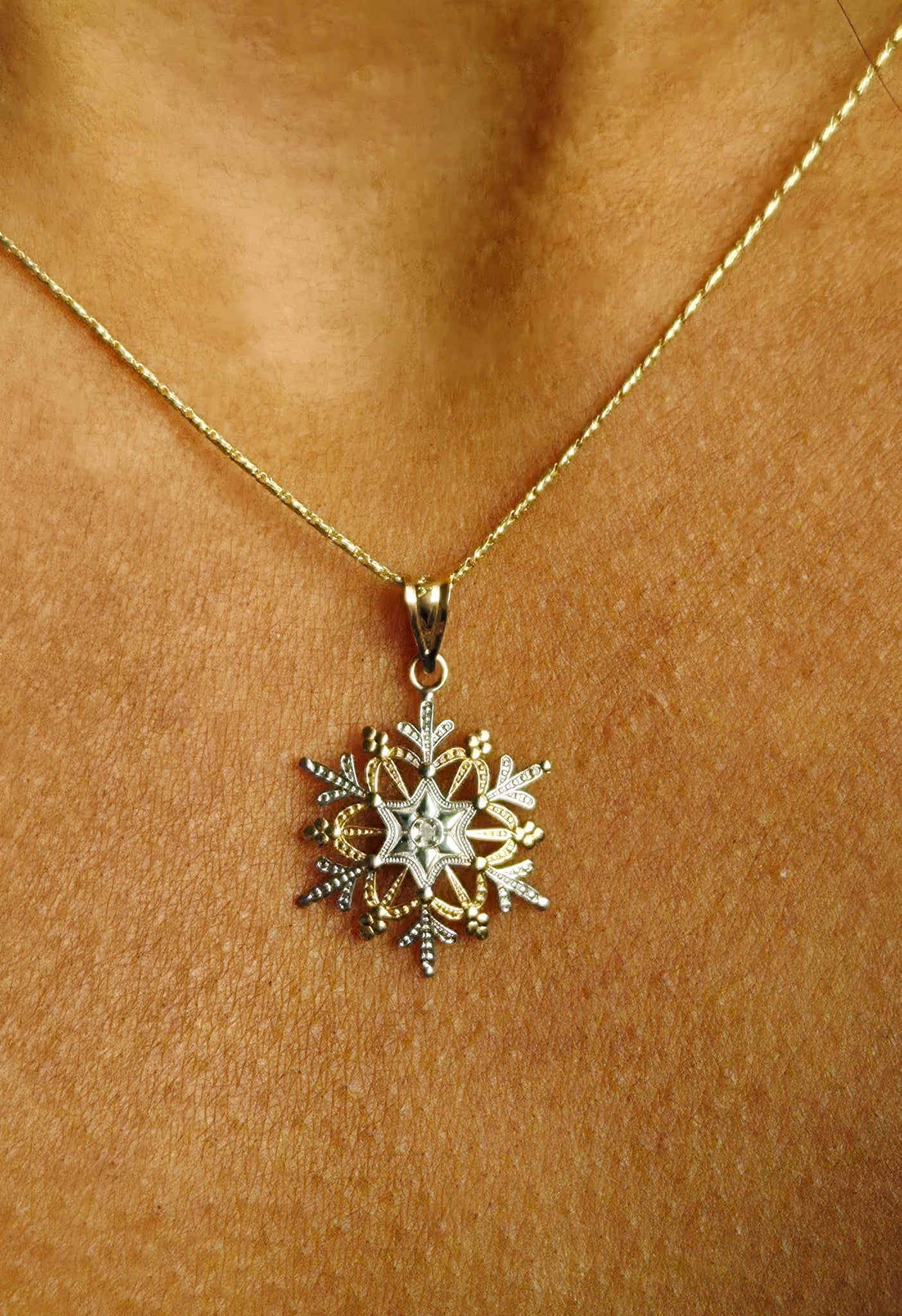 Two Tone Snowflake Charm on Razza Chain - 14K Gold