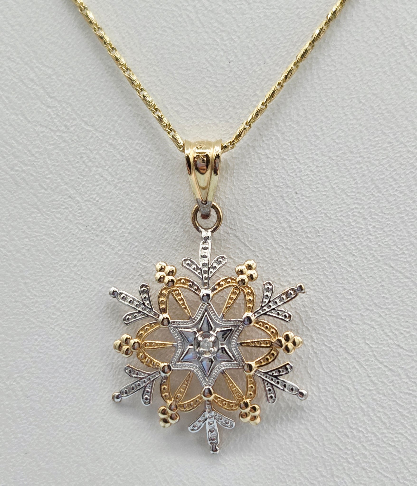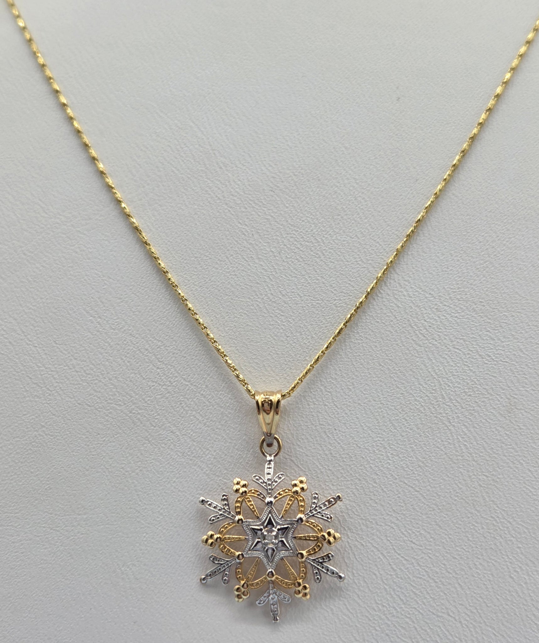 14K White and Yellow Gold Snowflake