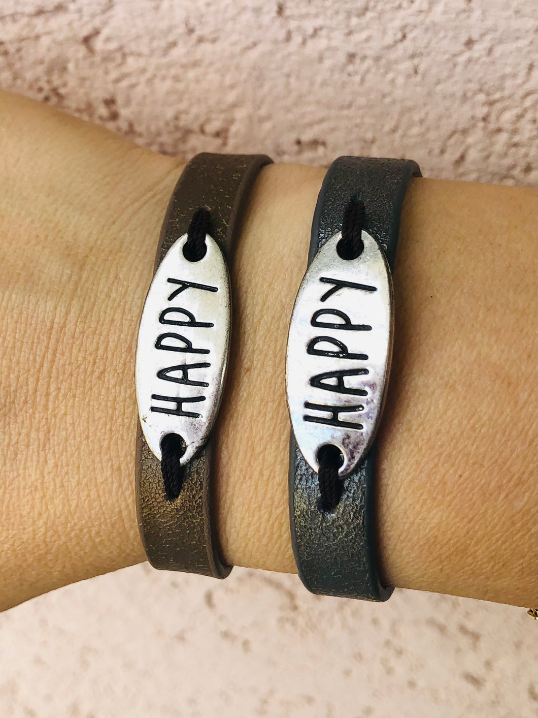 Our classic Savant Singles Bracelet with eco leather strands will inspire you day to day with an uplifting messages Happy, Dream, Fearless, Strength, and Believe.