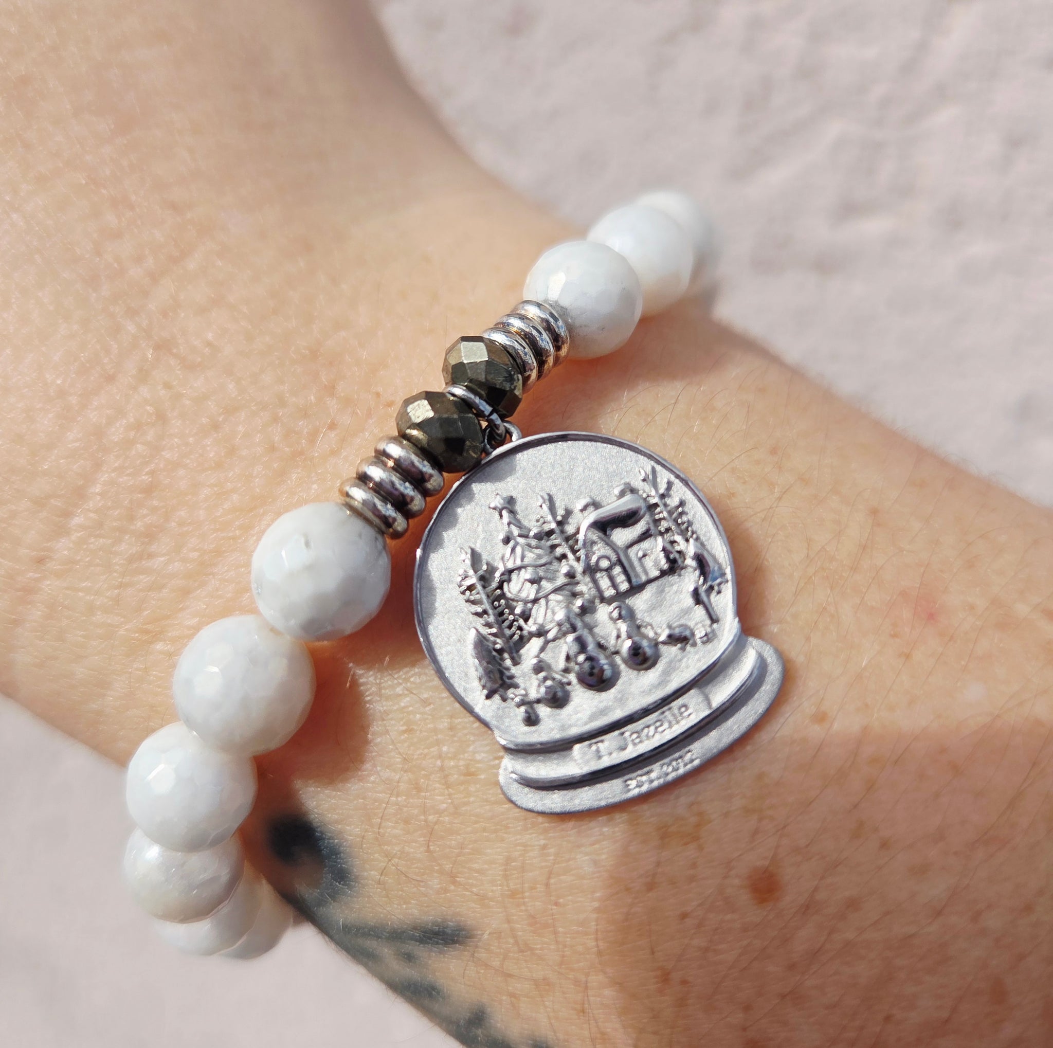 -Each beaded Winter Wonderland charm bracelet is accented with two Pyrite stones worn to bring good luck and good fortune to the wearer.