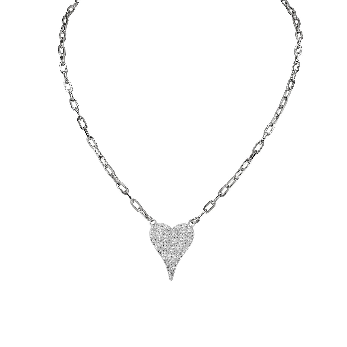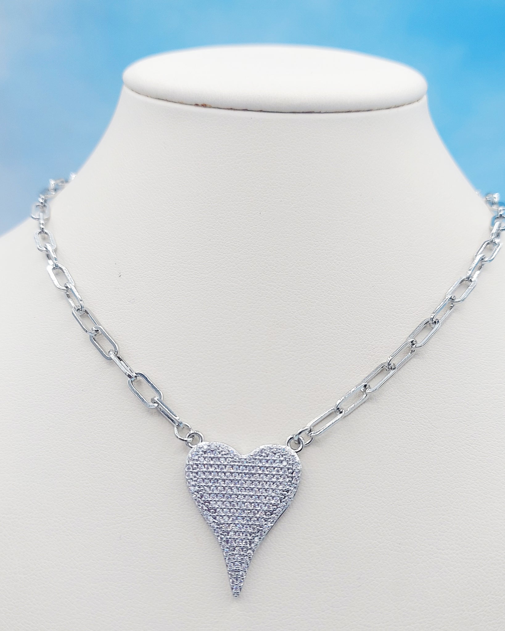 Dare to dazzle with the Aimee Paperclip Heart Necklace. Featuring a sleek paperclip chain paired with a radiant pavé heart pendant, this necklace strikes the perfect balance between elegance and edge. With options in 16" and 18" lengths, it’s a playful yet sophisticated statement piece for the modern fashionista. Available in an array of striking colors, it's the ultimate accessory for expressing your unique style—day or night.