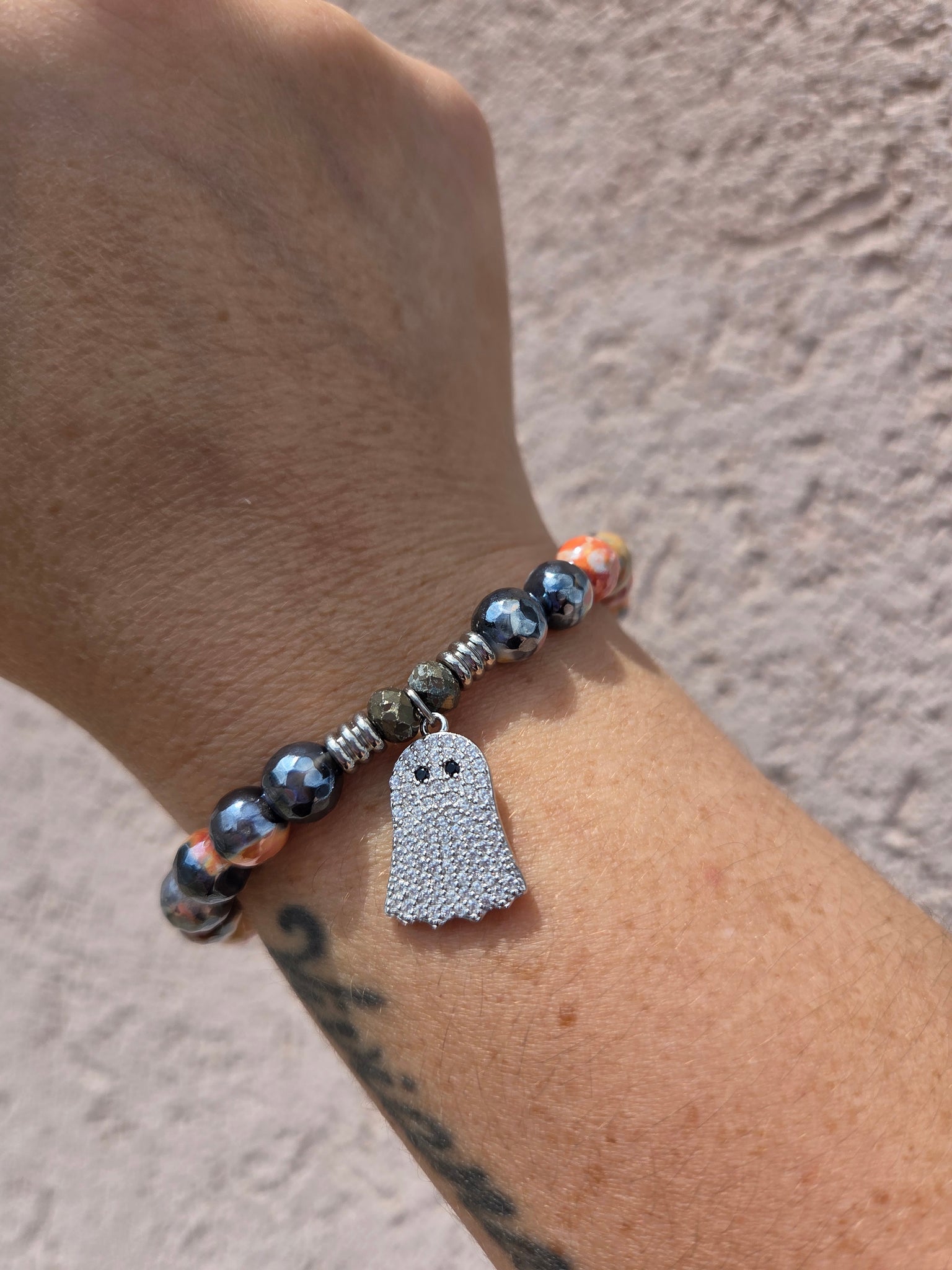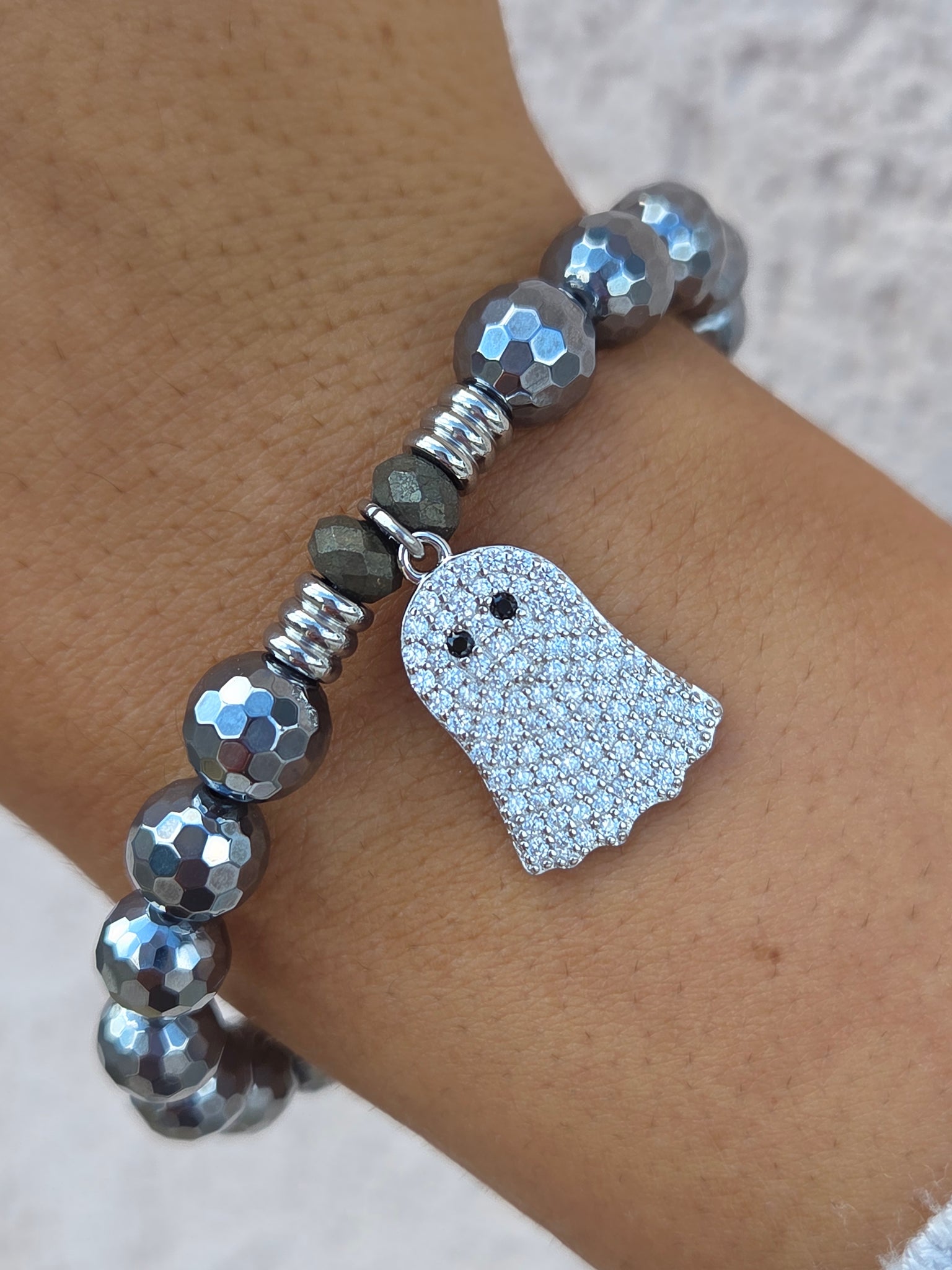 Ghost Sterling Silver Charm Bracelet- A symbol of spirt and sweet memories. This charm captures the magic of Halloween and the warmth of those we hold dear, seen or unseen. A reminder that love and joy never truly fade. Â