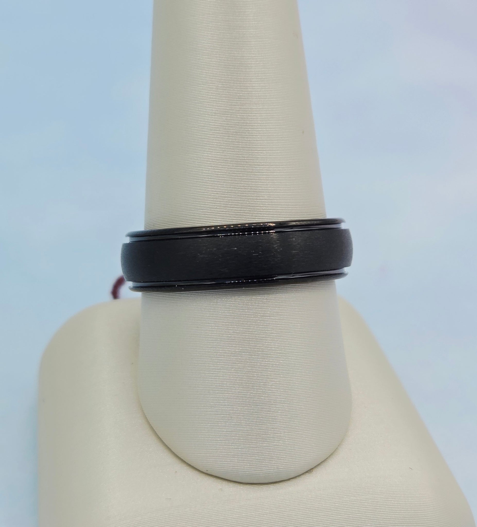 Men's Black Tungsten Etched Stripe Band Ring