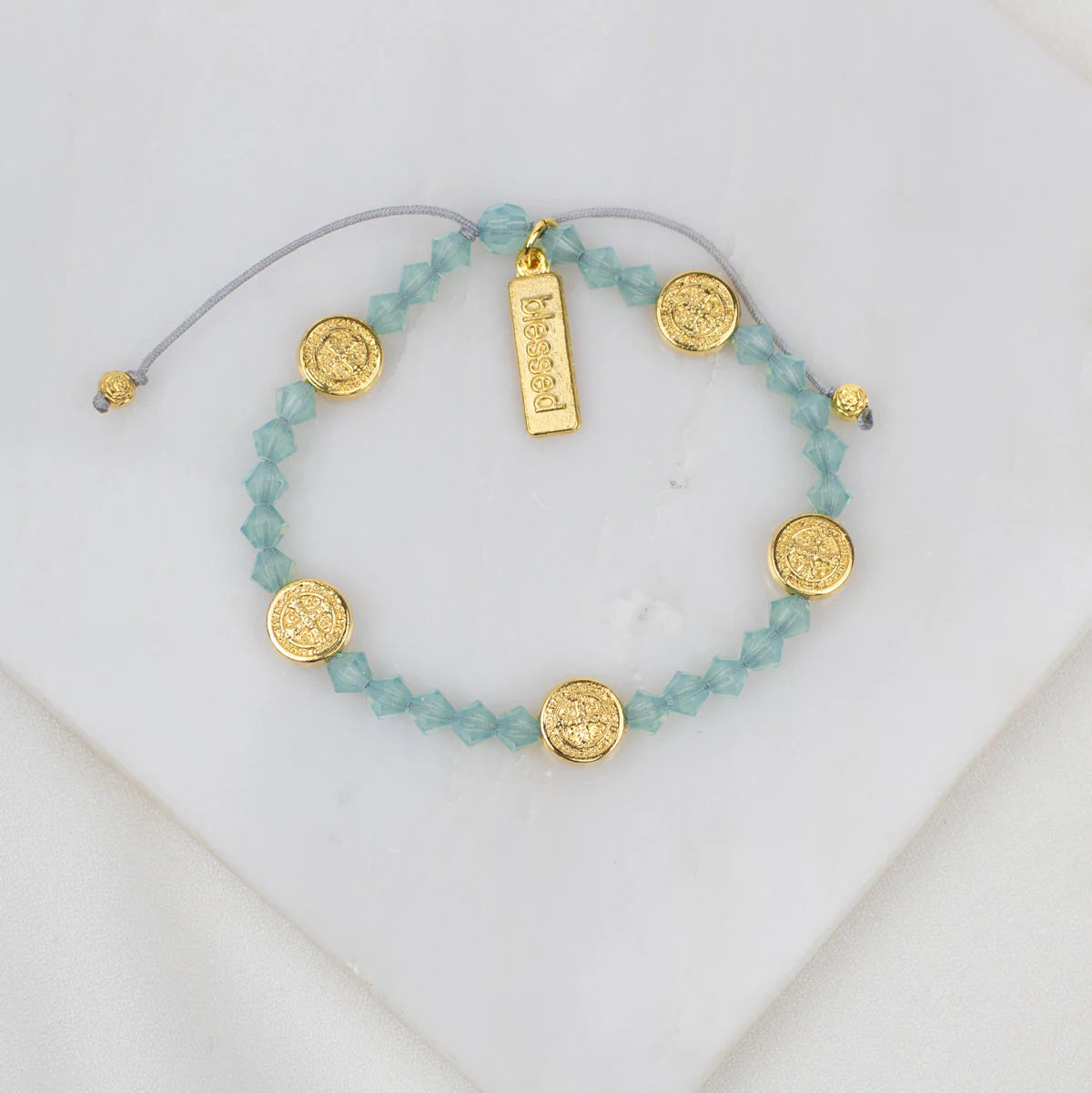 - Stellar Blessings Ocean Crystal and Benedictine Blessing Bracelet comes on an inspirational card