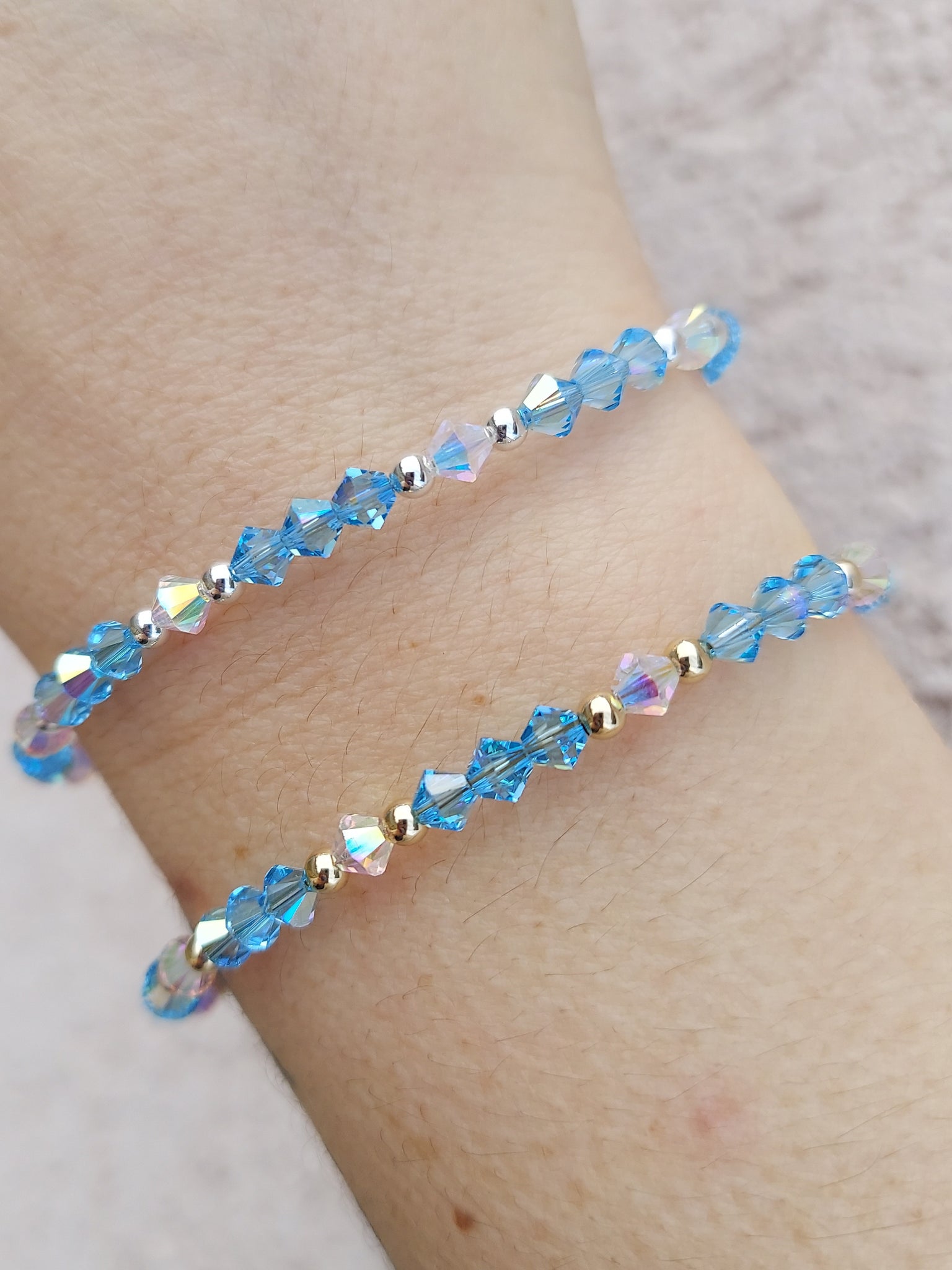 ~ The Amanda ~ A Swarovski Stacker Bracelet with amazing sparkle!!! This beautiful bracelet is made of brilliant Swarovski crystals with two colors - all bracelets come with your choice of a primary color, and “clear” as the secondary color. Each bracelet is 6.5”. One inch of extra chain lets you adjust the bracelet to your preference. All items are handmade in the USA in a smoke-free studio, and most importantly, they're made with OurWholeHeart❤︎