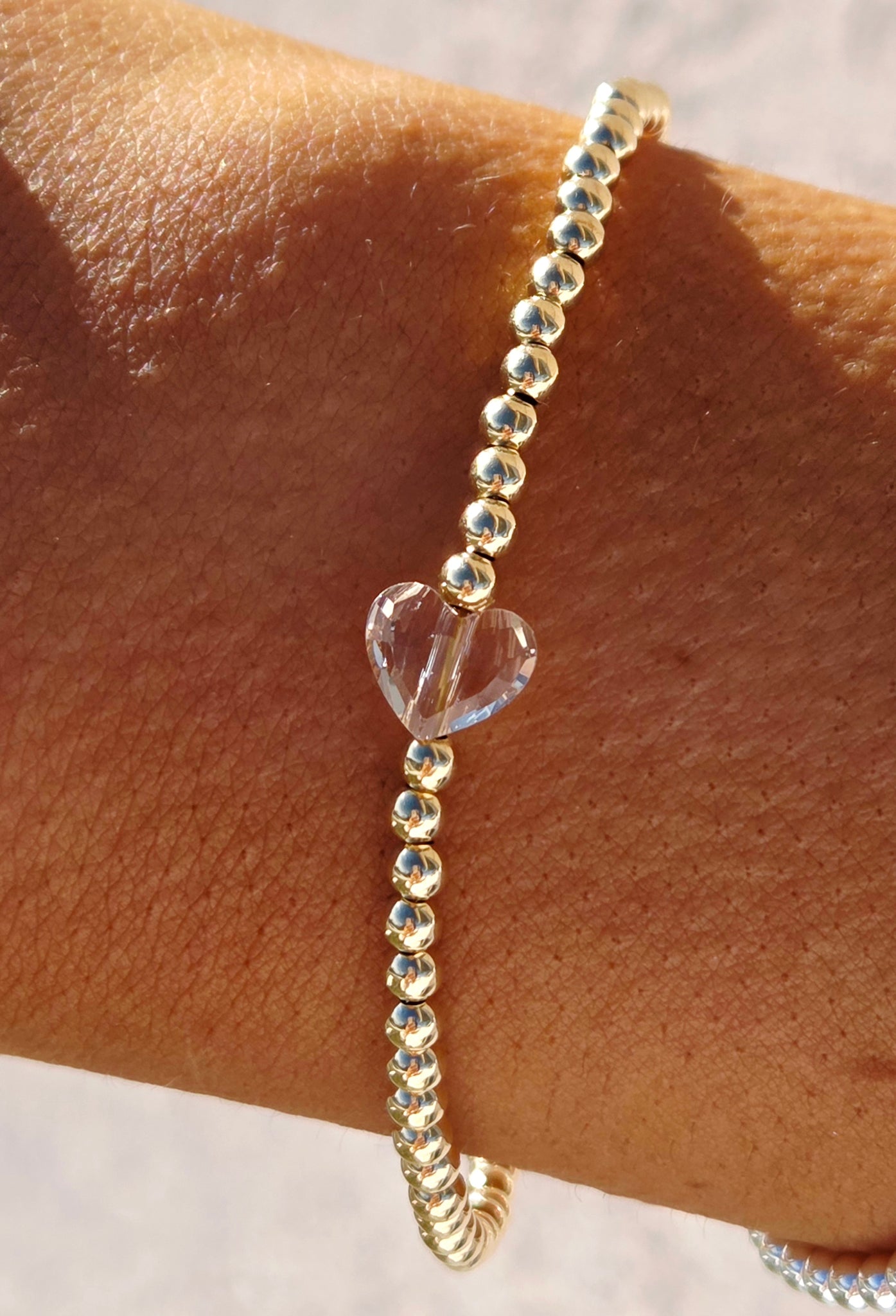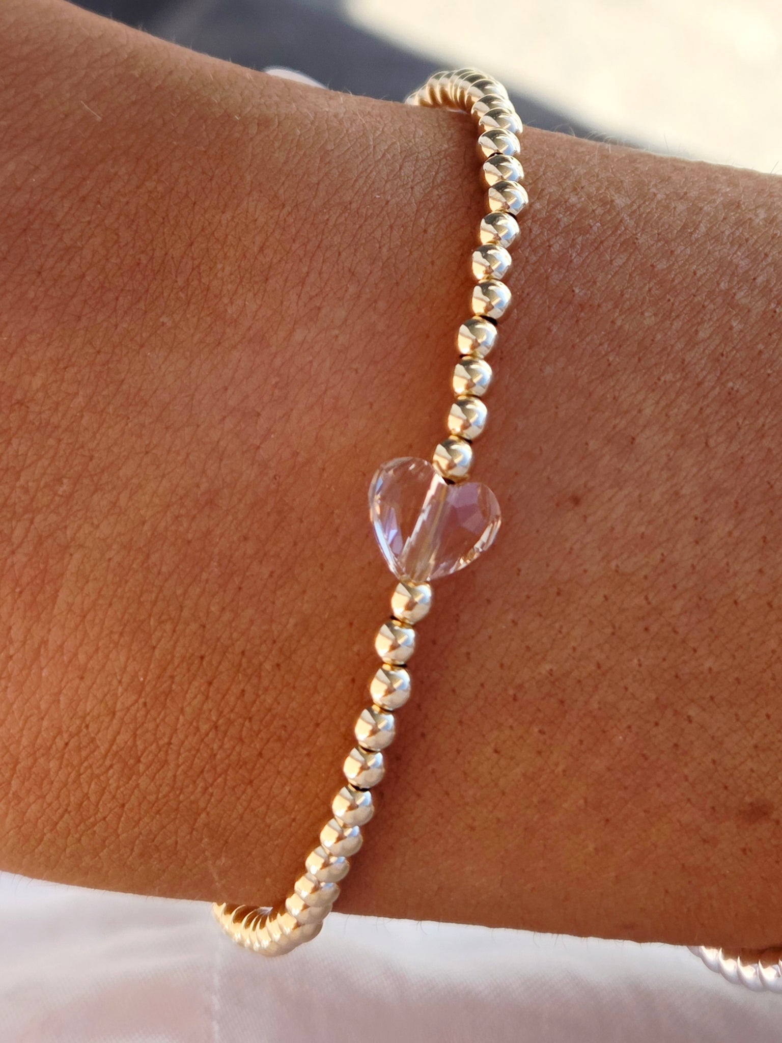 Champagne Crystal Heart Beaded Bracelet- Our Whole Heart