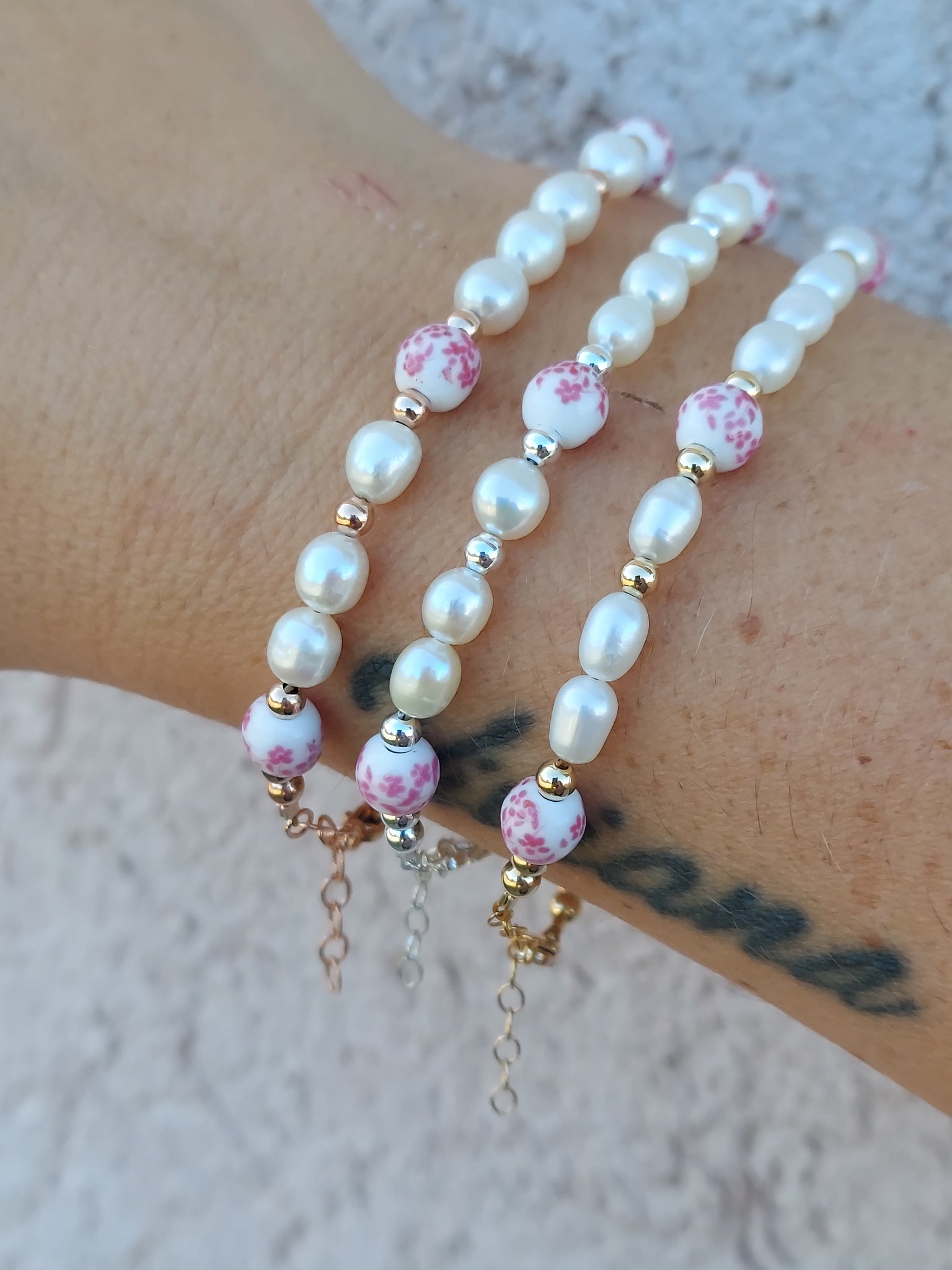 The Amalfi Porcelain and Pearl Beaded Bracelet - Our Whole Heart