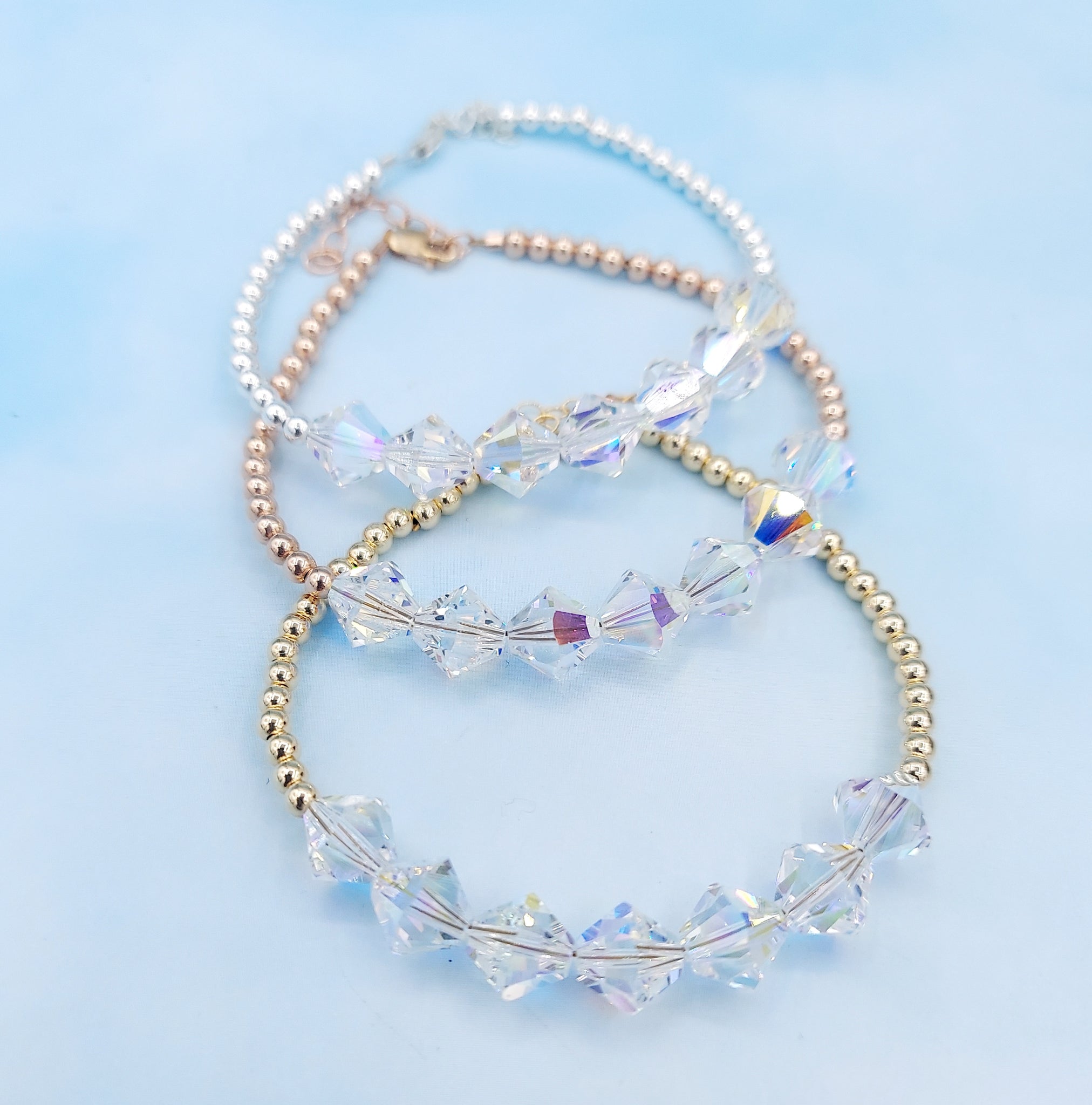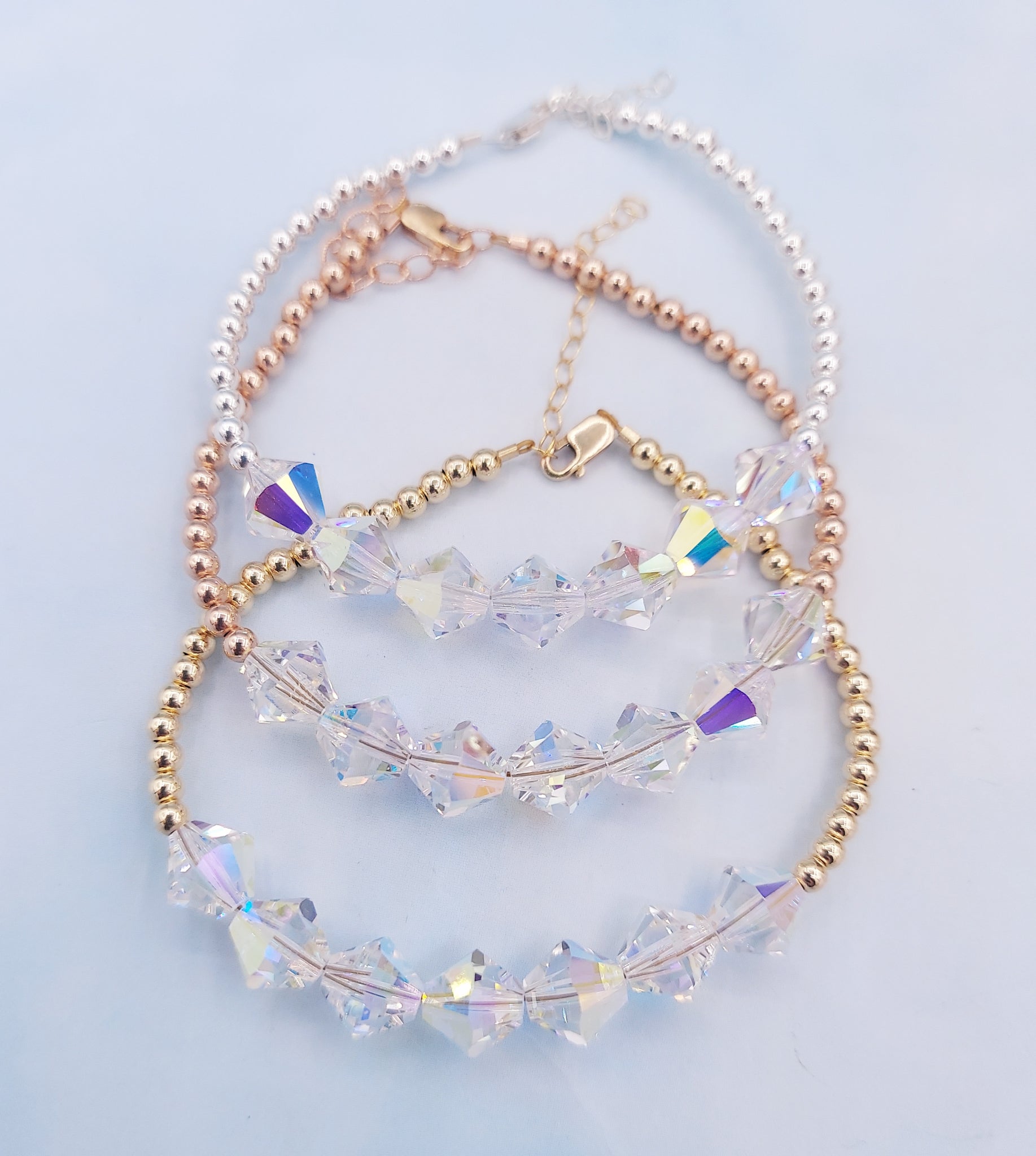 Swarovski crystalss are known for their dazzling luster that catch light to shine in every direction! One inch of extra chain lets you adjust the bracelet to your preference. All items are handmade in the USA in a smoke-free studio, and most importantly, they're made with OurWholeHeart❤︎