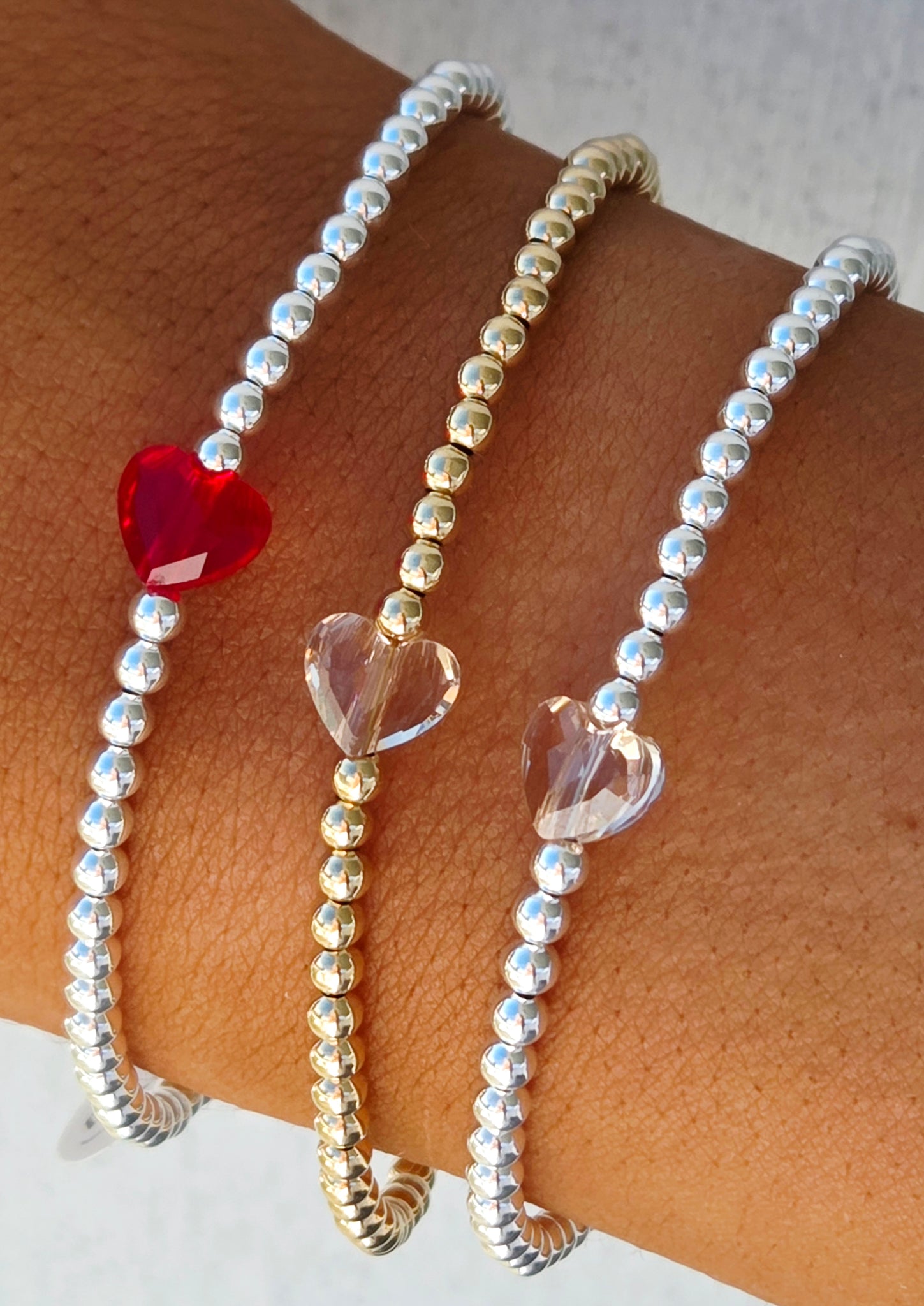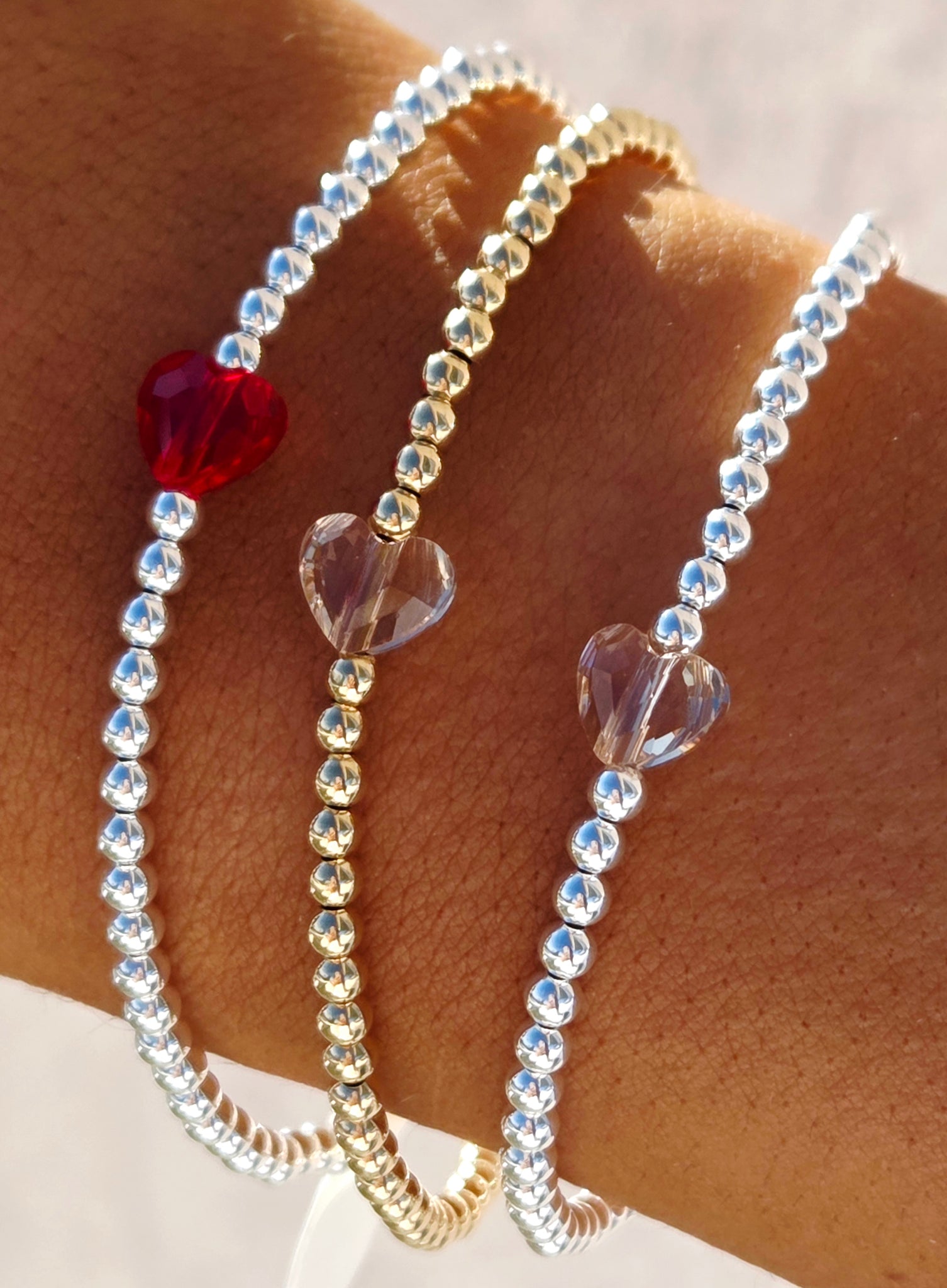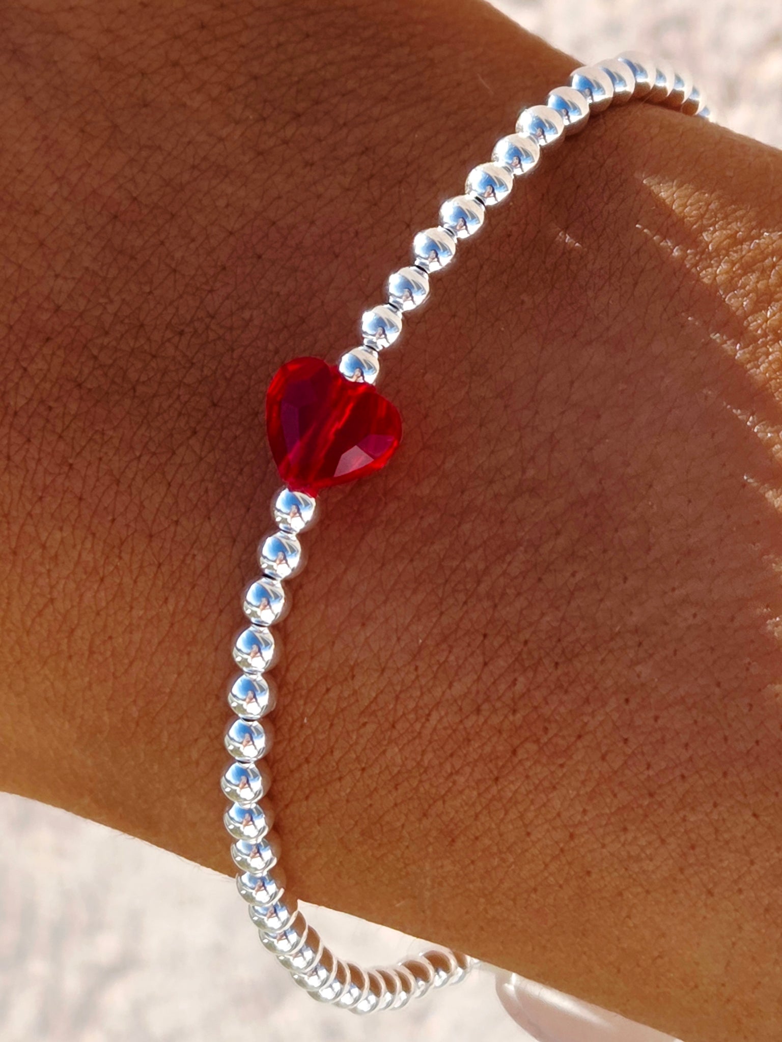 Red Crystal Heart Beaded Bracelet- Our Whole Heart