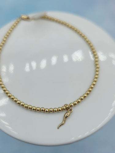 "Mini Italian Horn or Cornicello" Beaded Anklet - Our Whole Heart