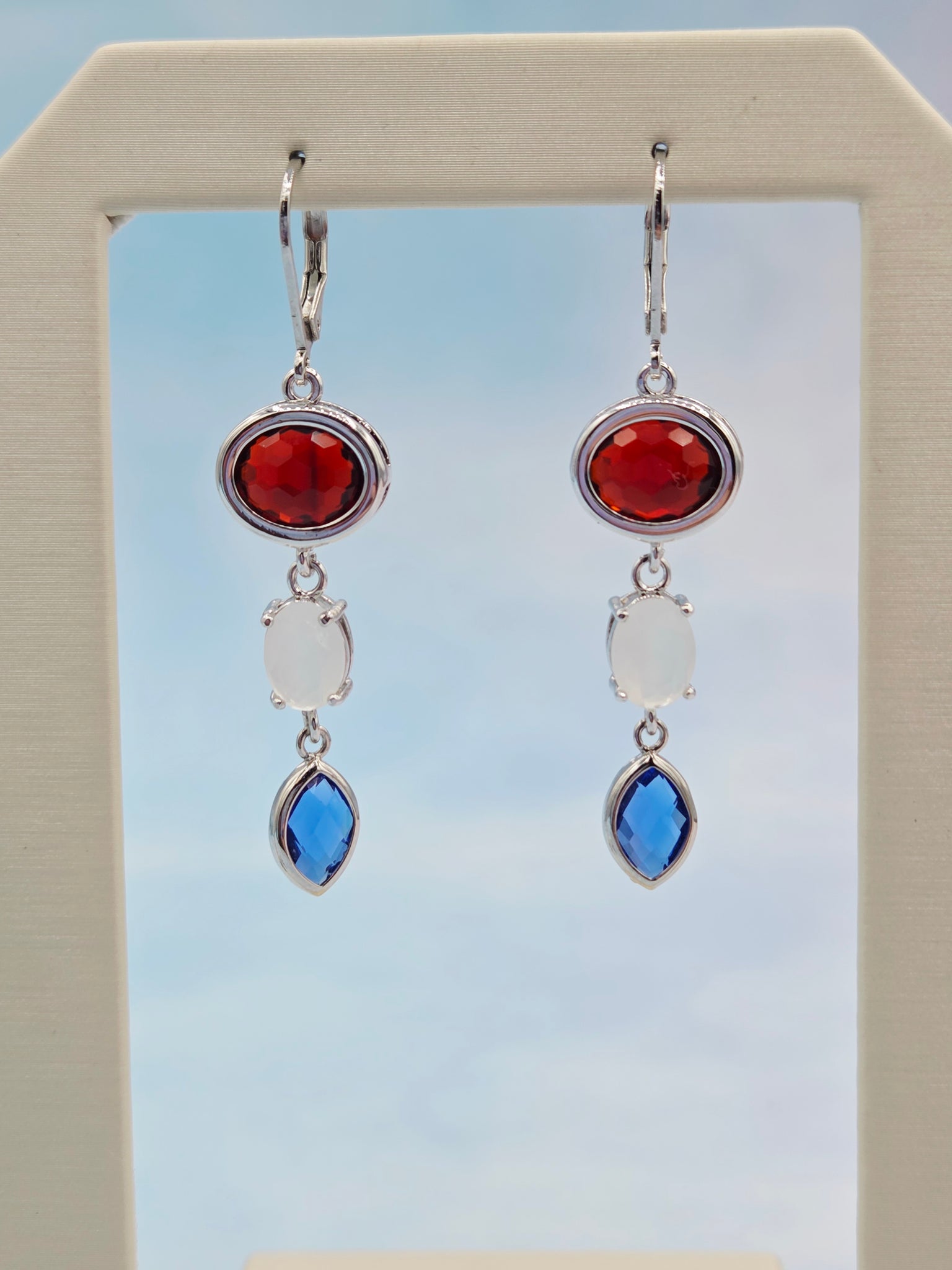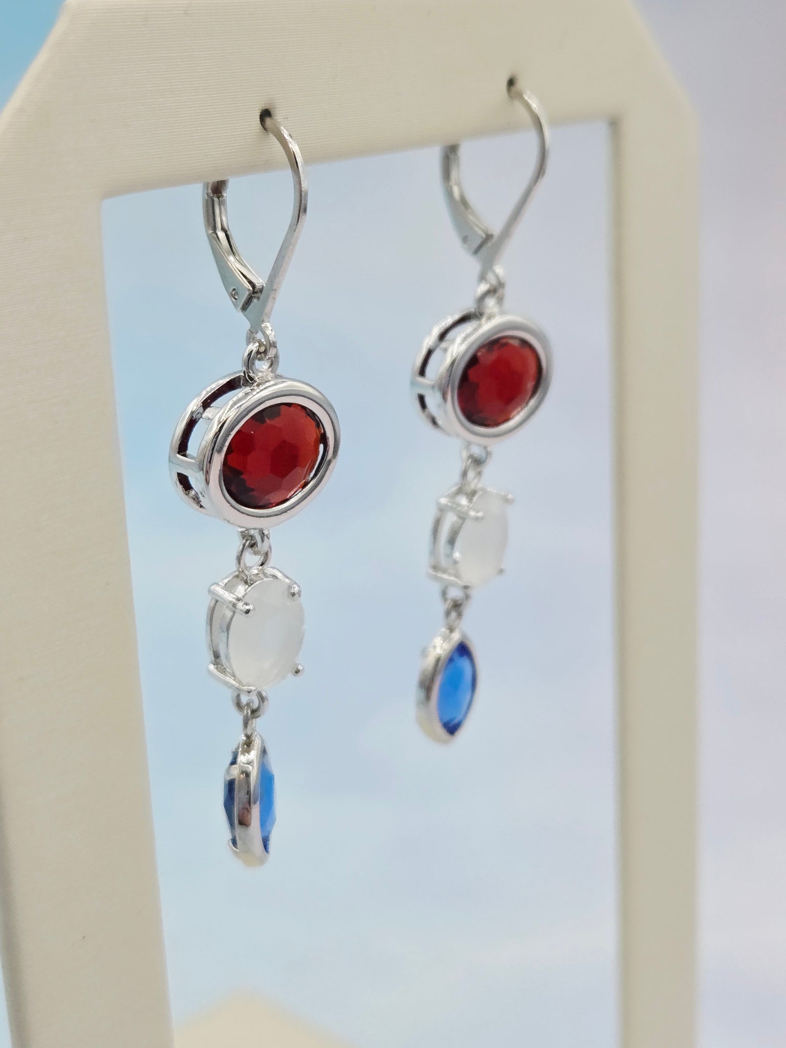Red, White, Blue Silver Gemstone Leverback Earrings - One of a Kind