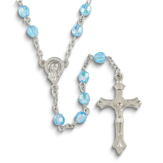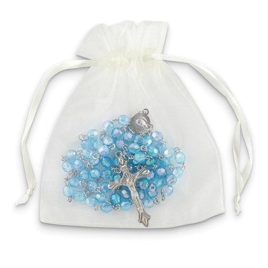Silver-tone Light Blue Aurora Borealis Acrylic Beaded 19.5 inch Rosary