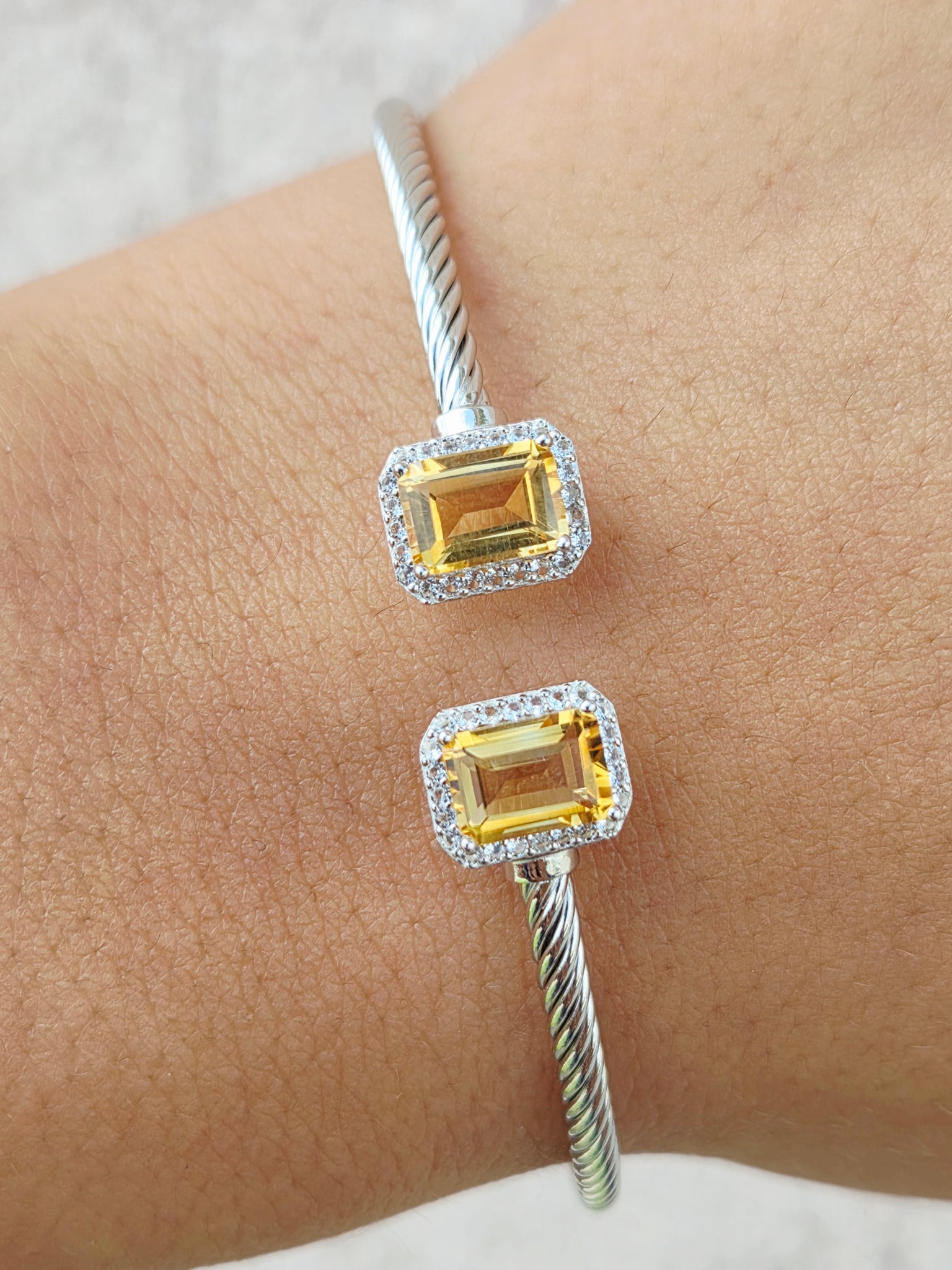 STERLING SILVER GENUINE CITRINE 7X5MM EM & G WHITE TOPAZ CUFF 7.25"