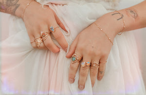 This dainty stacking band gives off an iridescent glow and scintillating sparkle. Â