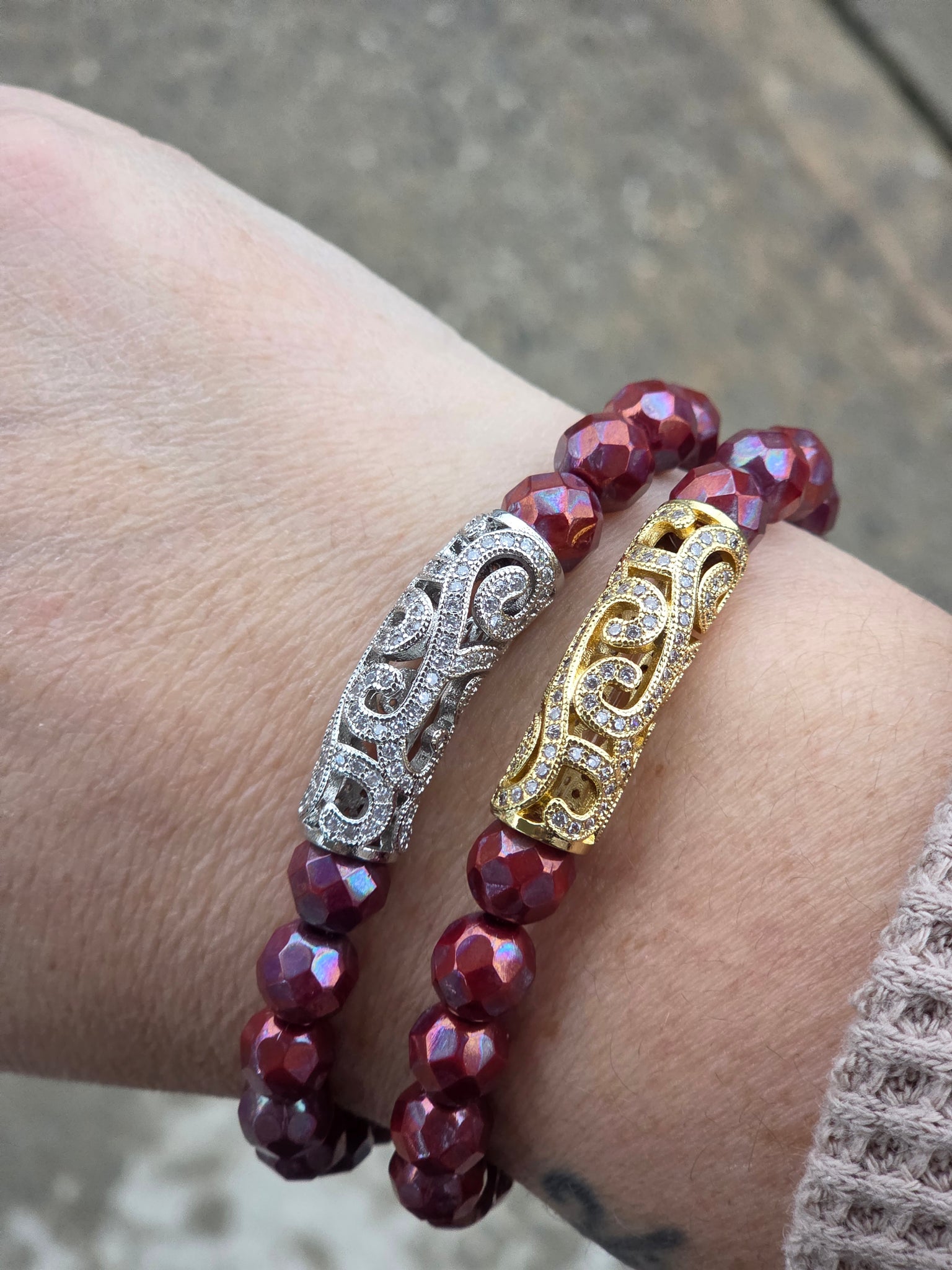 Faceted Burgundy Vintage-Style Filigree Beaded Bracelet - Stash