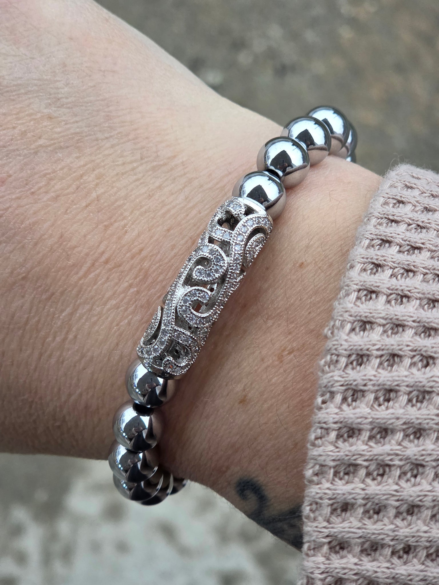 Hematite Vintage-Style Filigree Beaded Bracelet - Stash