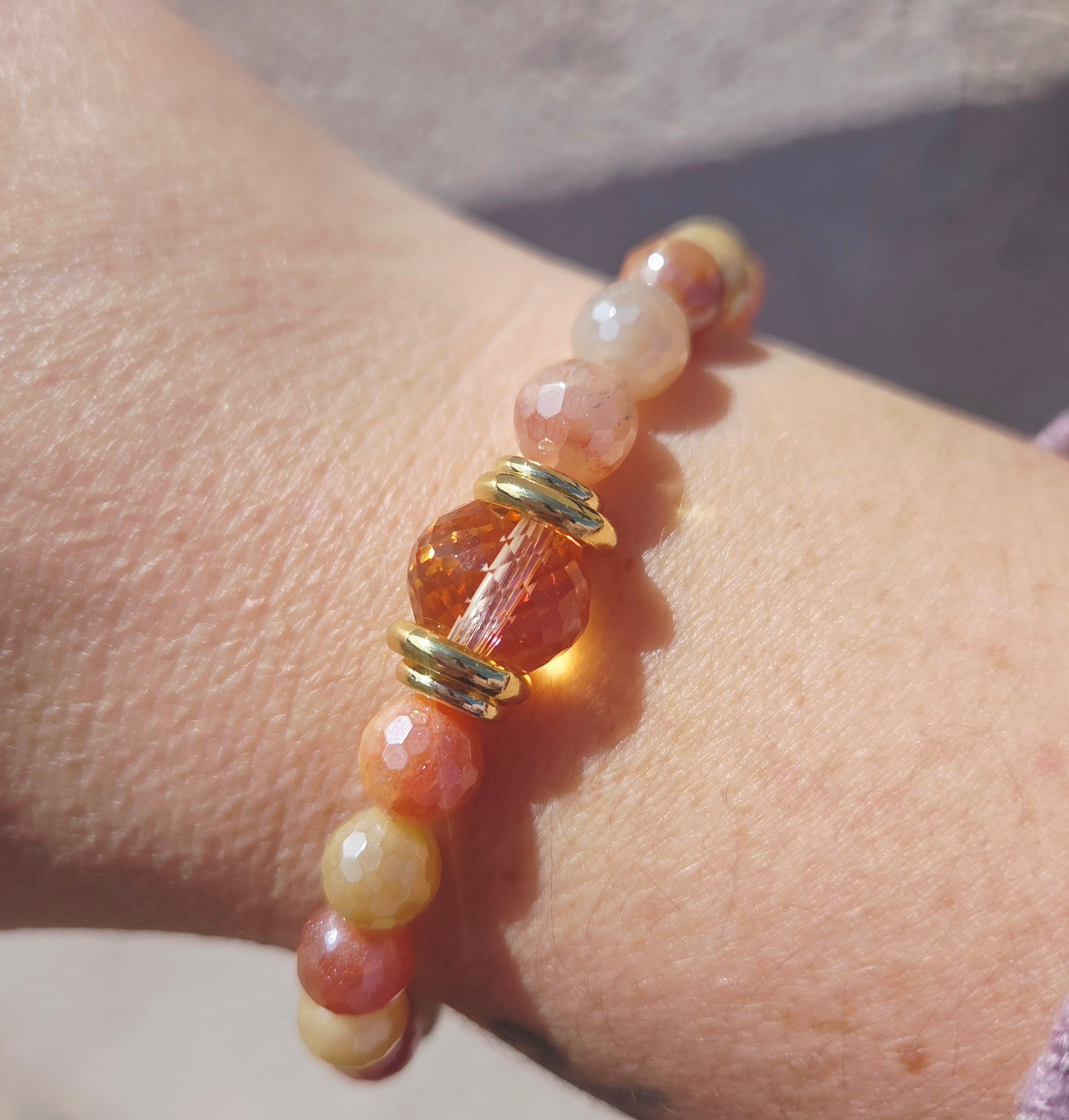 Sunset Crystal on Mystic Flower Jade Beaded Bracelet - Stash