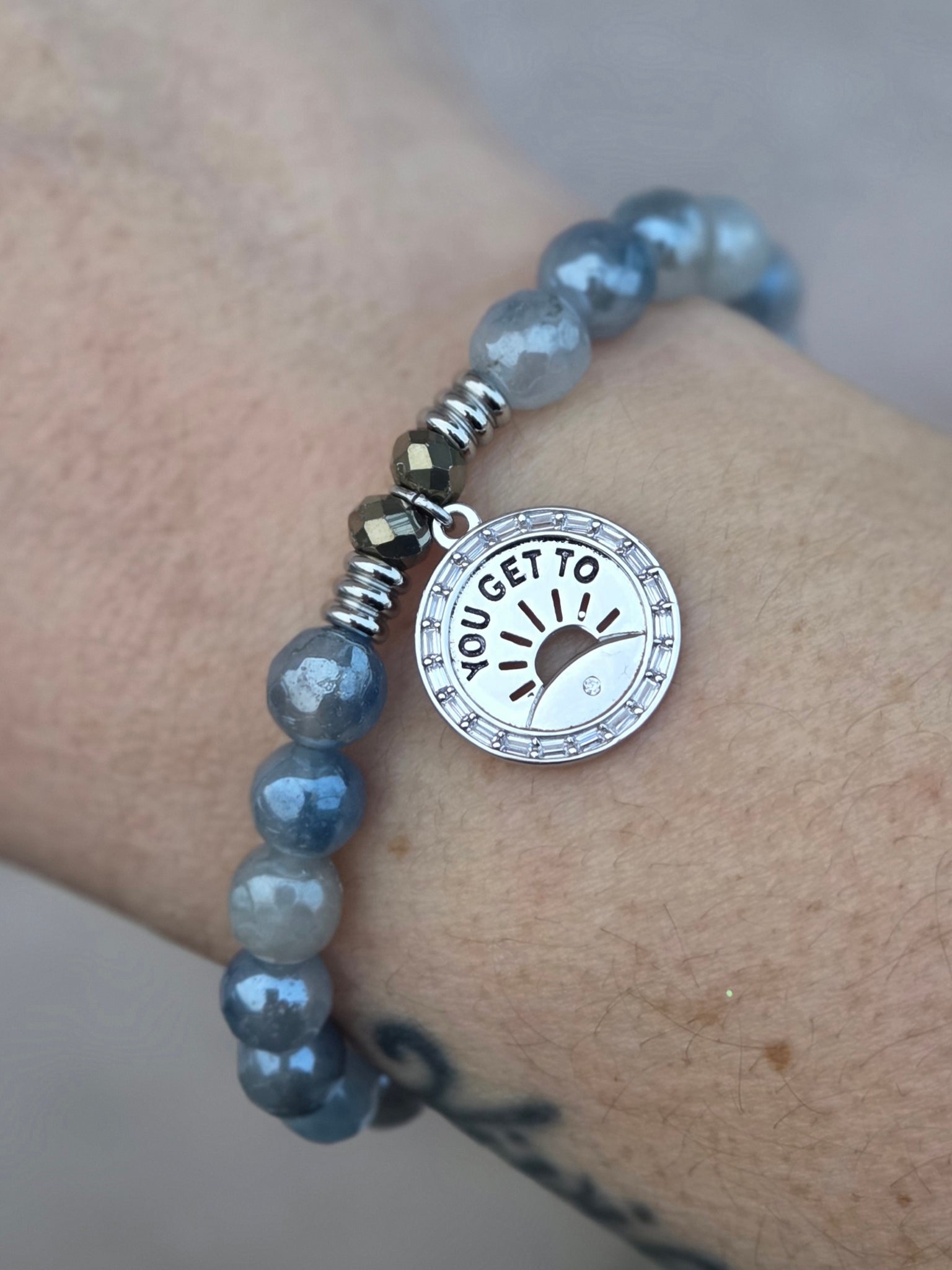 You don't have to - you GET to. You get to wake up, you get to love, to hug your loved ones, to show up. This charm is a reminder when life feels challenging, shift your view and remember you get to.Â