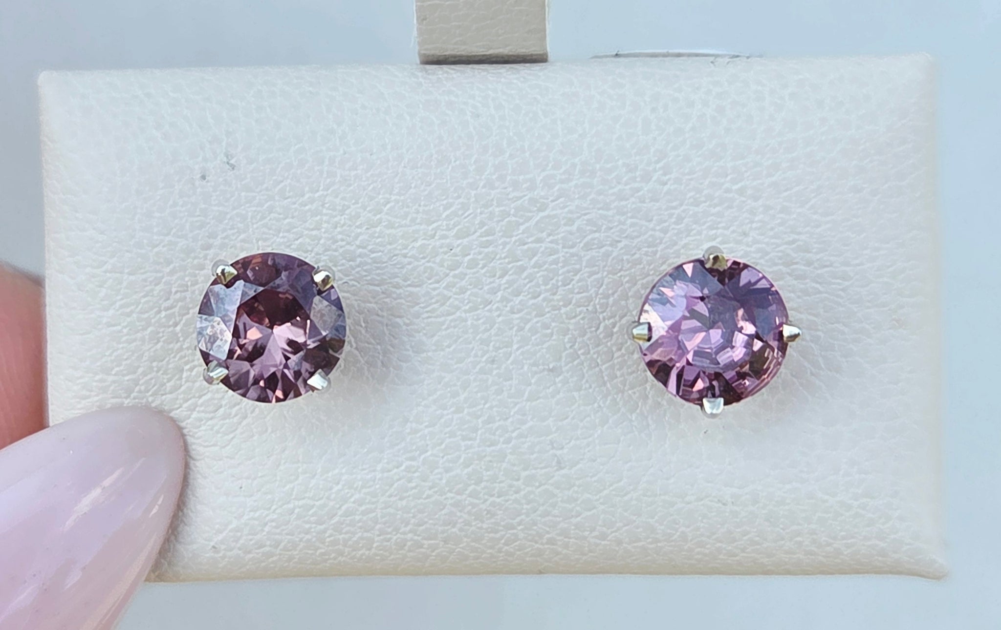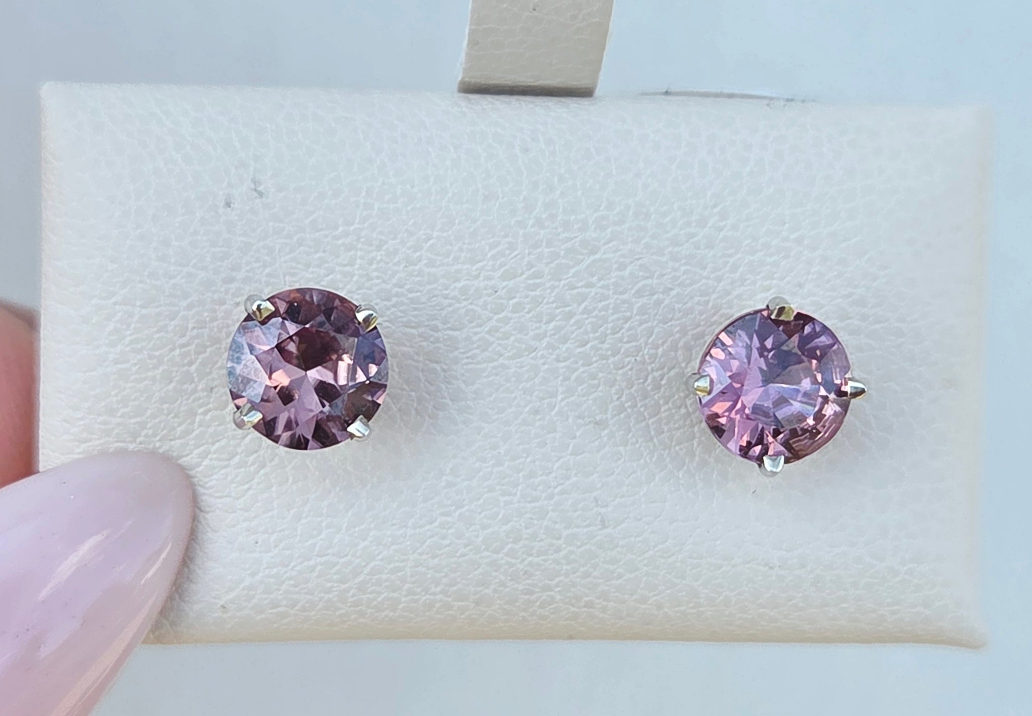 These brilliant dusty rose colored zircon stones shine brilliantly in a white gold setting.