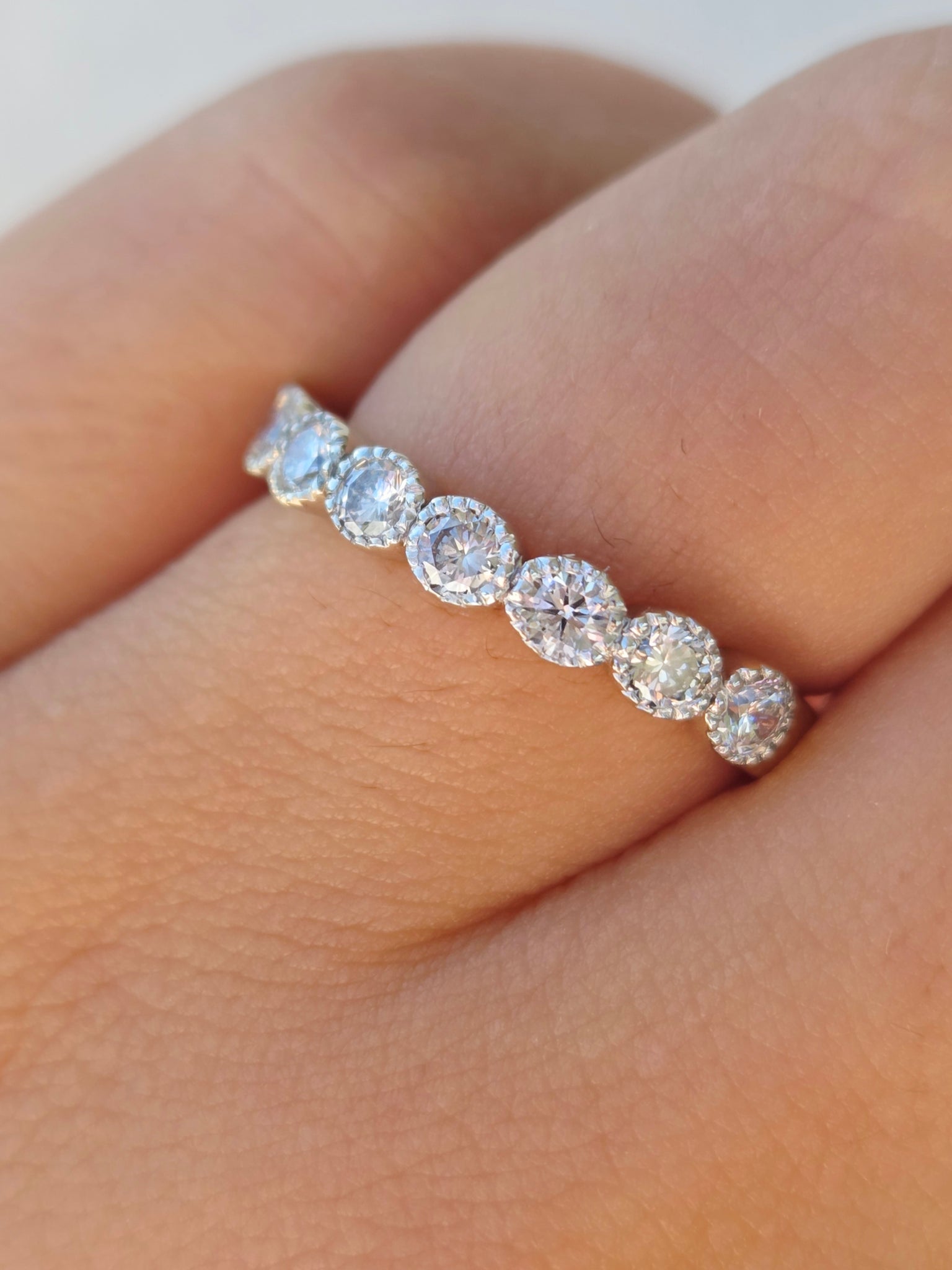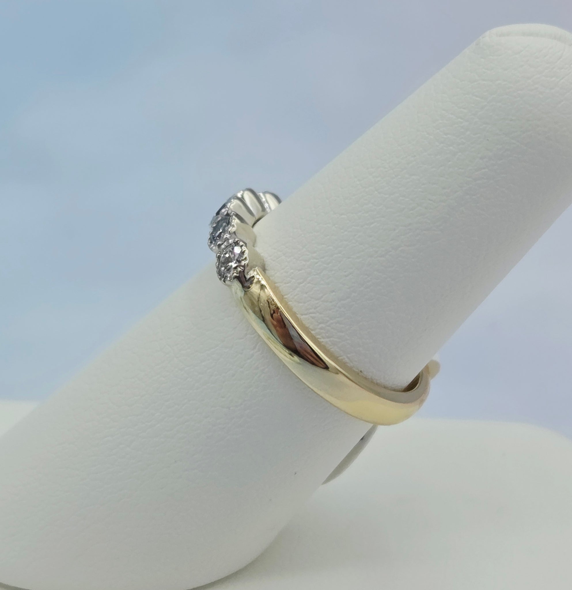 This beautiful 14K White & Yellow gold band totals .40 Carats. There are 8 total diamonds. The ring is a size 6.5. Sizing is available for an additional fee.Â