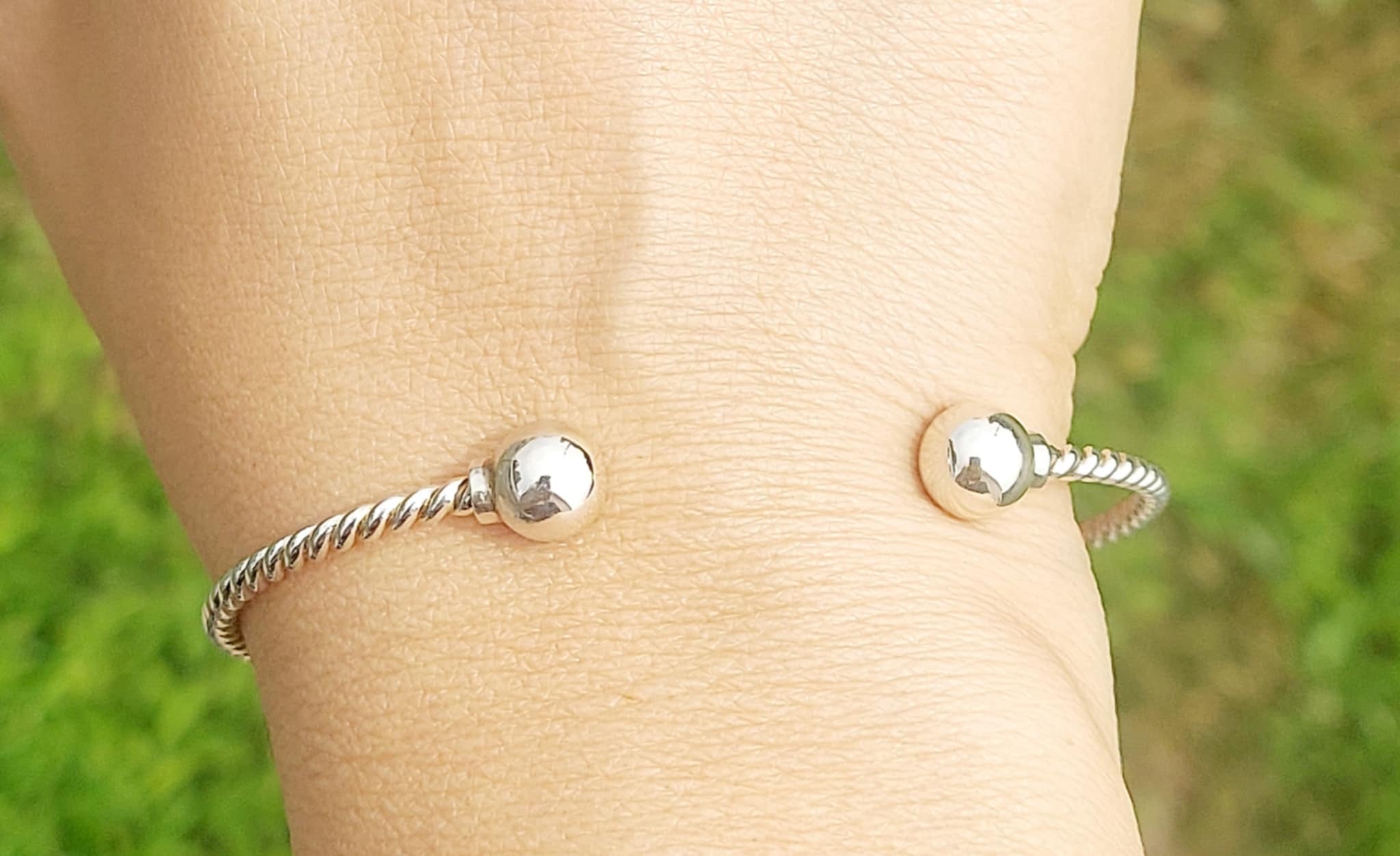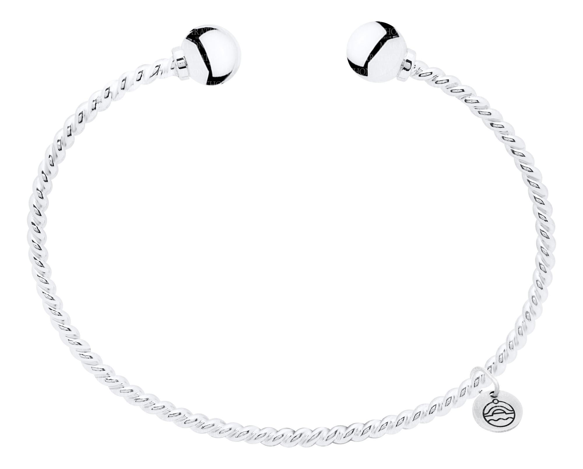 Cape Cod Twist Cuff Bangle with 2 Beads - Sterling Silver