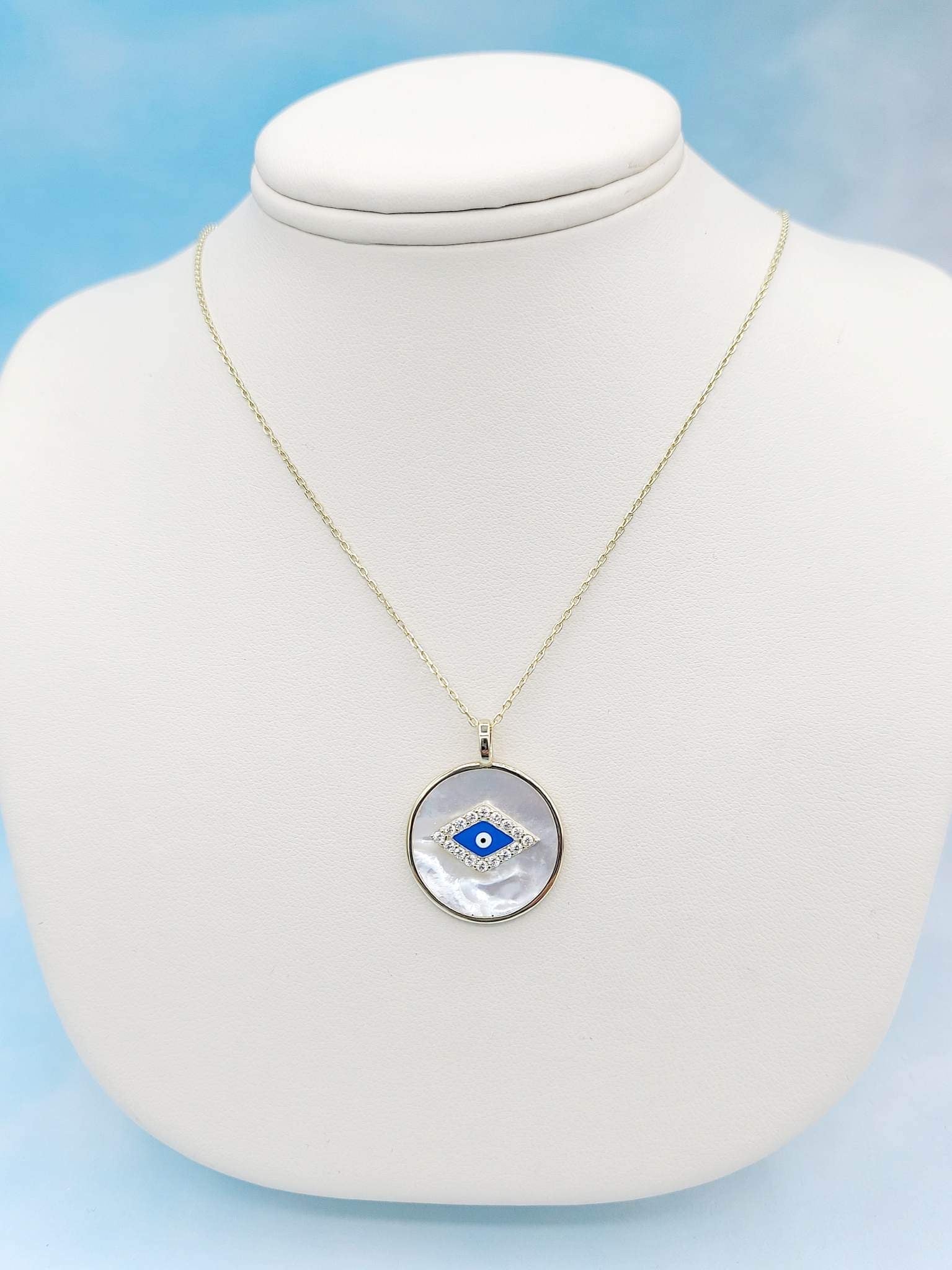 Circle Evil Eye Pendant Necklace - Sterling Silver
