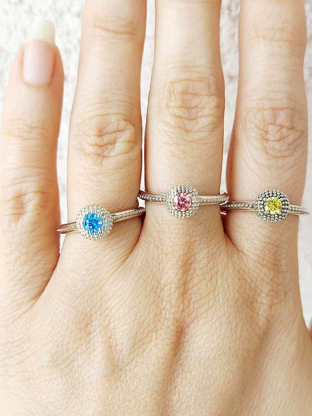 Share the personality and pride of your birth month, cherish family members, or mark a special occasion with this October Birthstone Ring featuring a stunning .925 sterling silver millegrain band and Fancy Pink Swarovski Zirconia with tiered millegrain frame.
