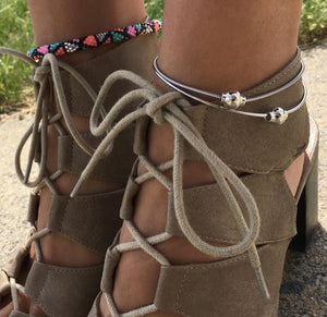 Two Tone Cape Cod Snake Chain Anklet - Sterling Silver and 14K Yellow Gold