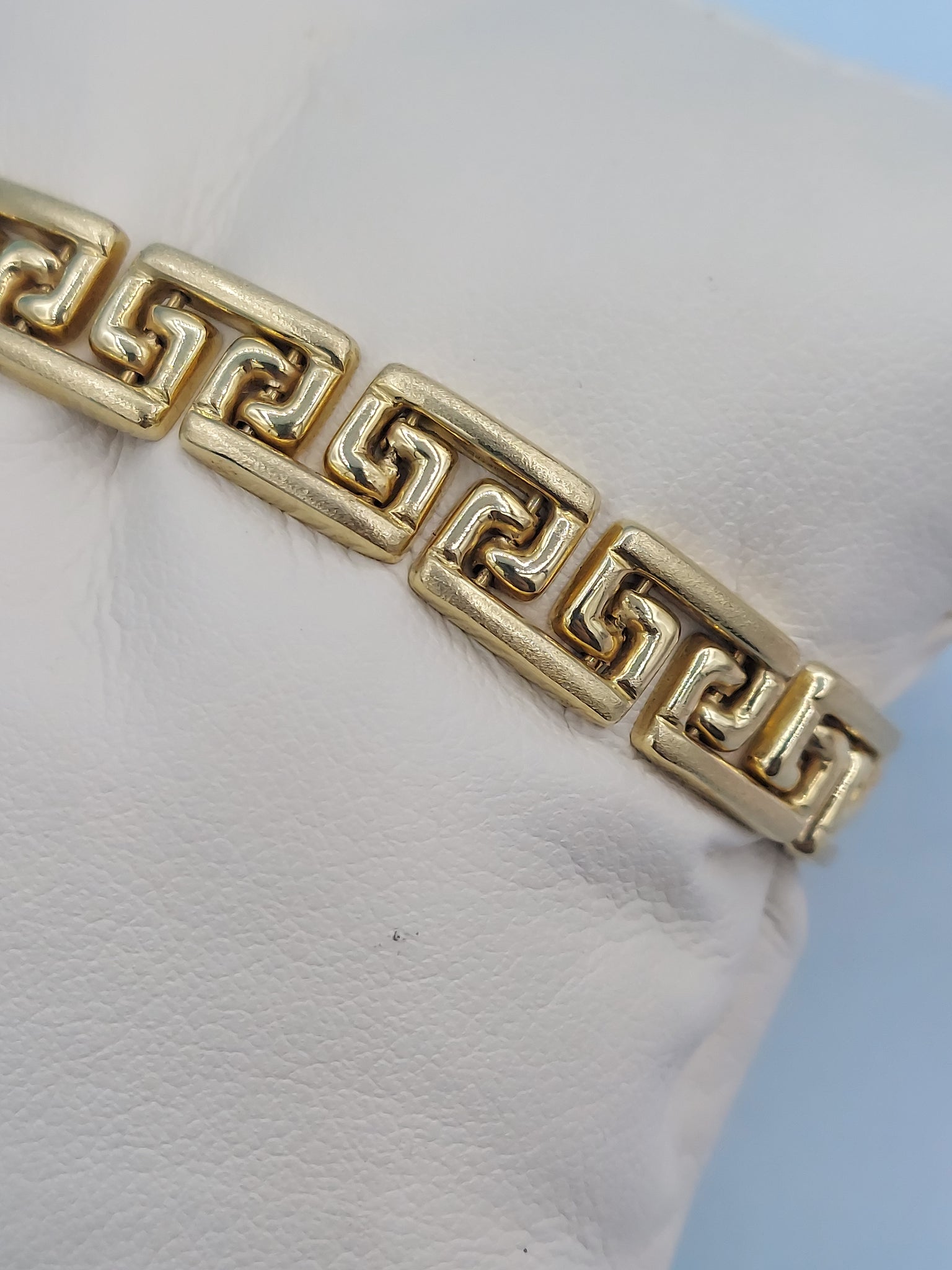 Estate Greek Key Bracelet with brushed and polished gold finish.