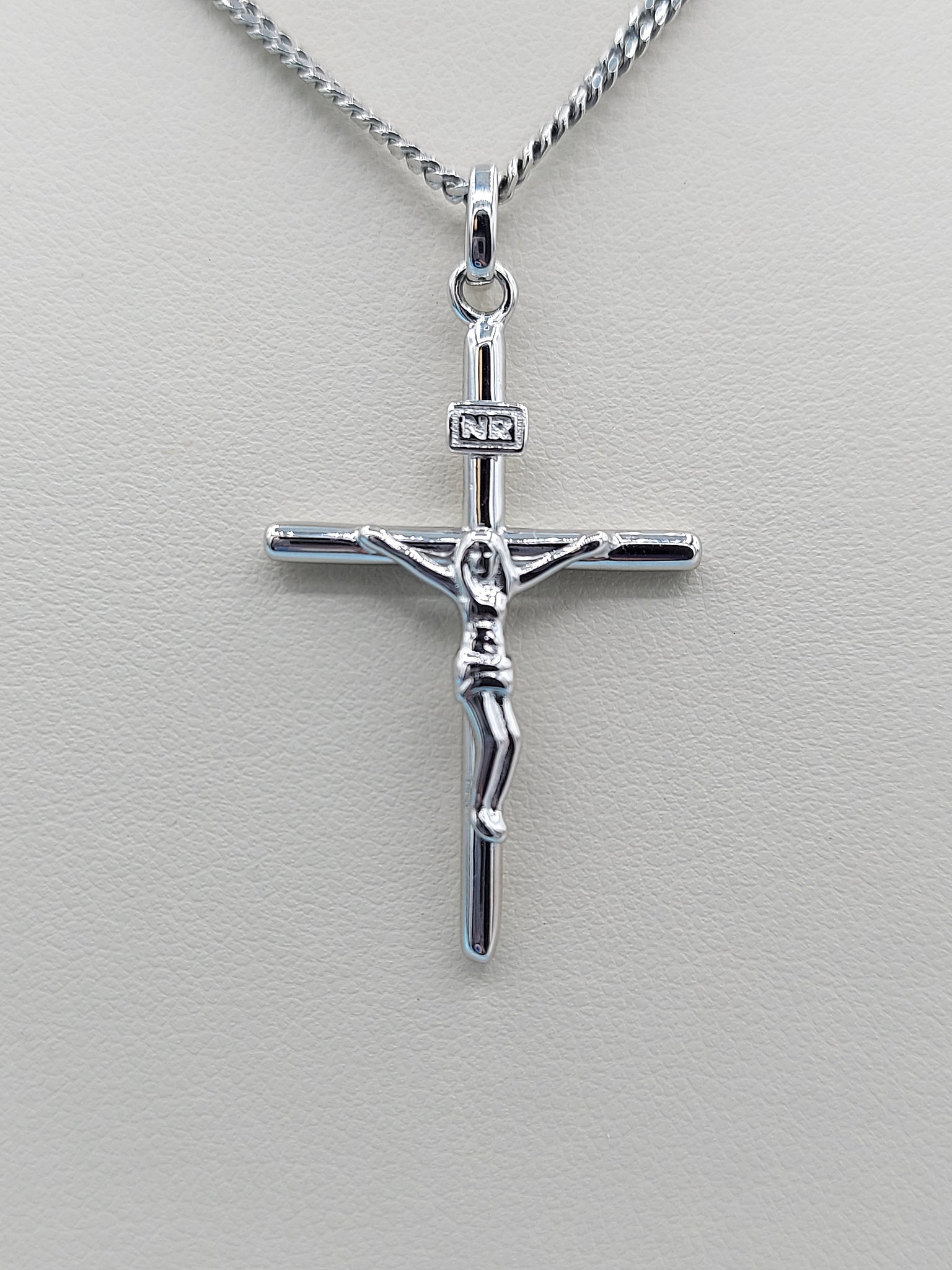 Crucifix Cross Pendant & Rhodium Chain - Sterling Silver