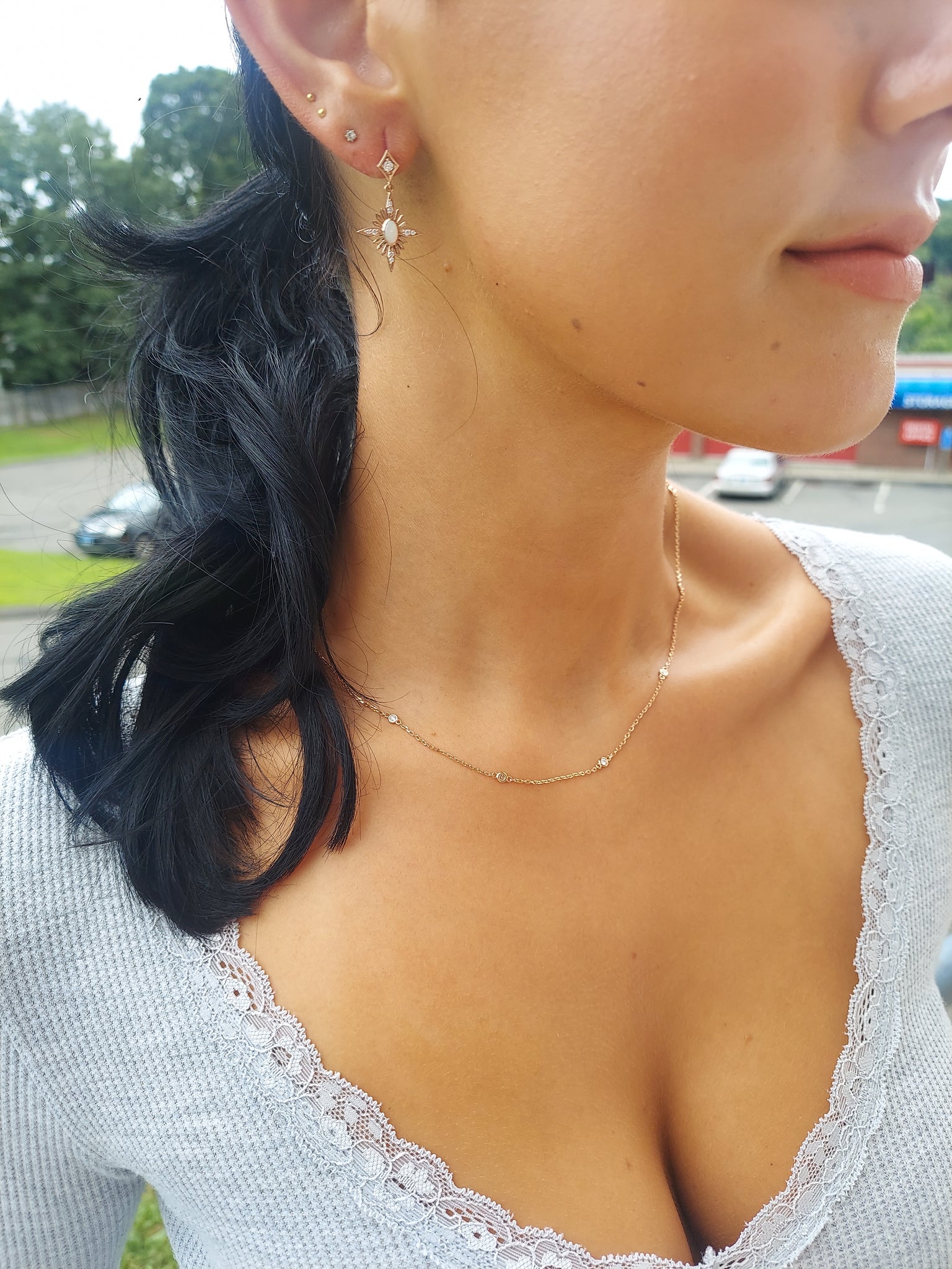 A diamond every inch or so! This necklace can be worn at 16", 17" or 18" and is .25 Carats. This necklace has a lobster claw closure.