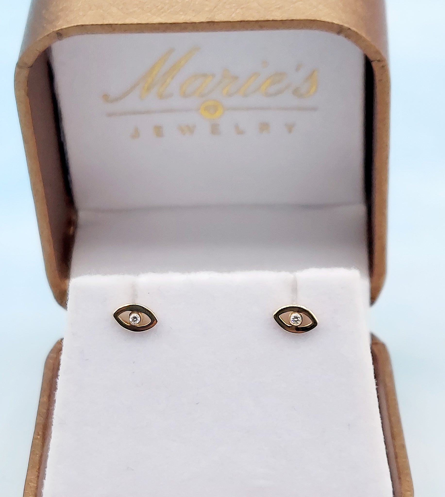 Evil Eye Diamond Studs - 14K Yellow Gold