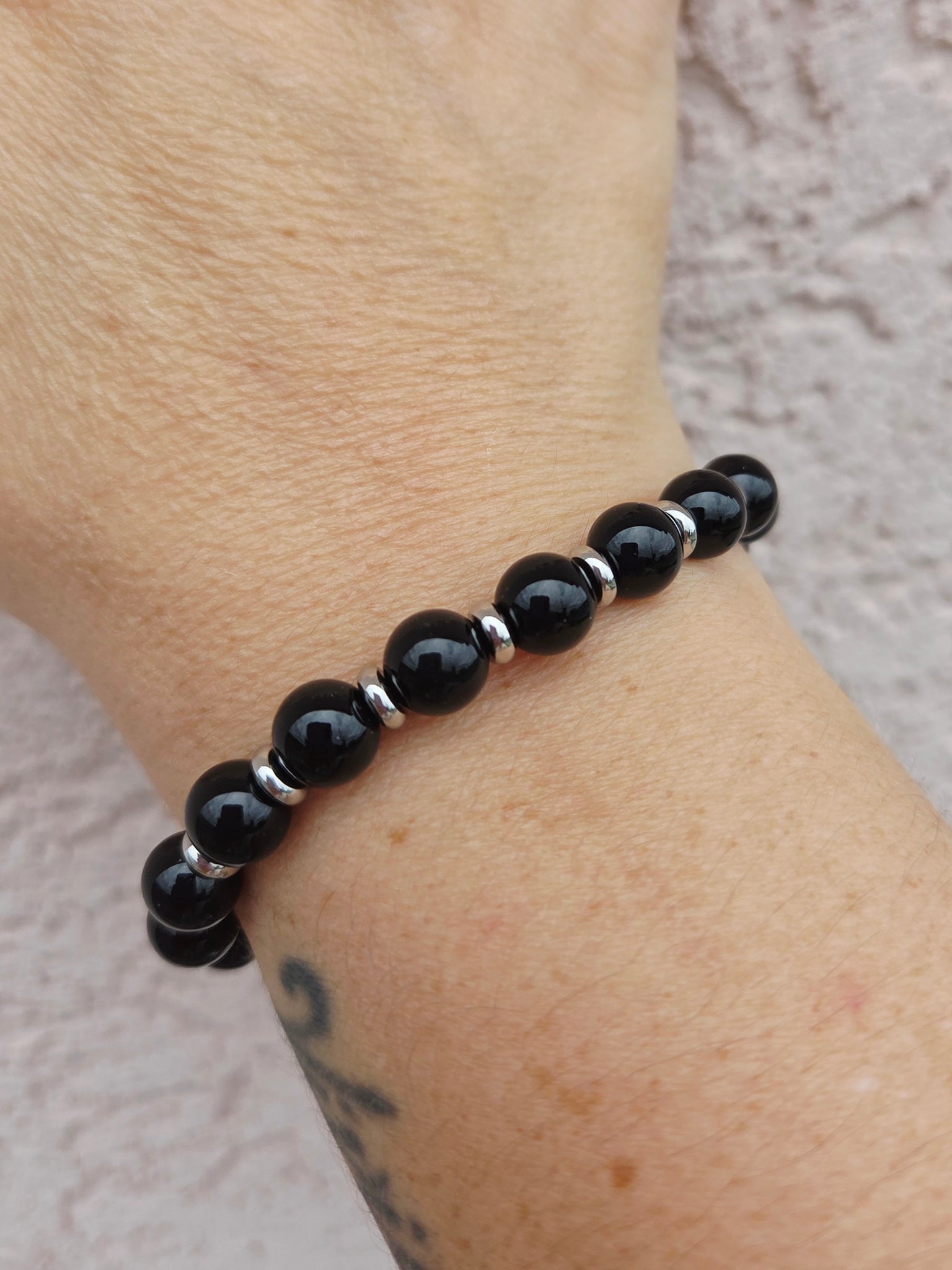 Onyx & Silver Empowered Elegance Beaded Bracelet - TJazelle