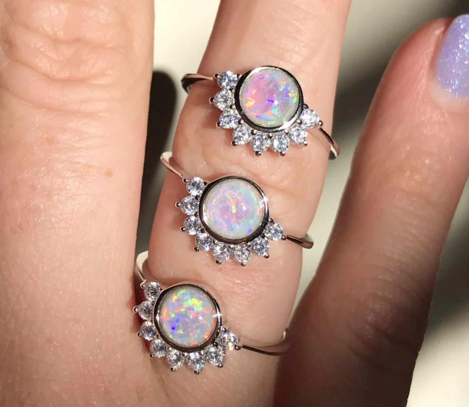 6mm simulated white opal center stone
