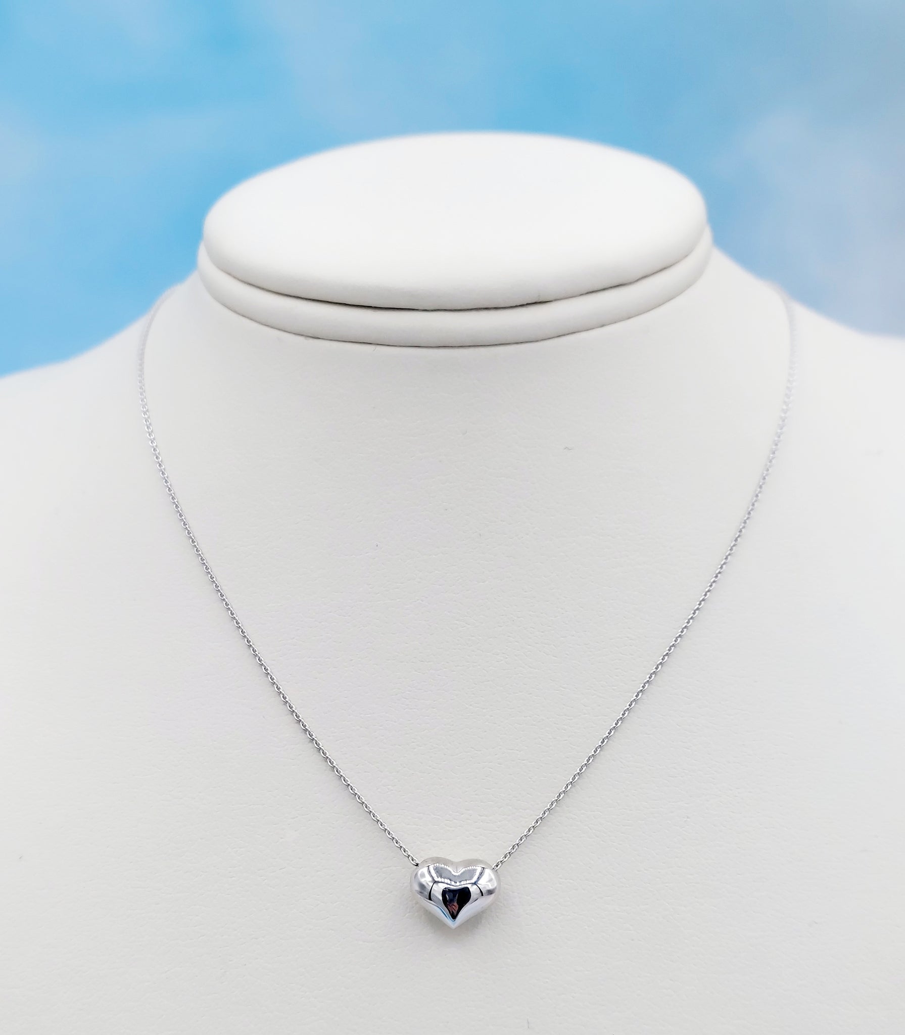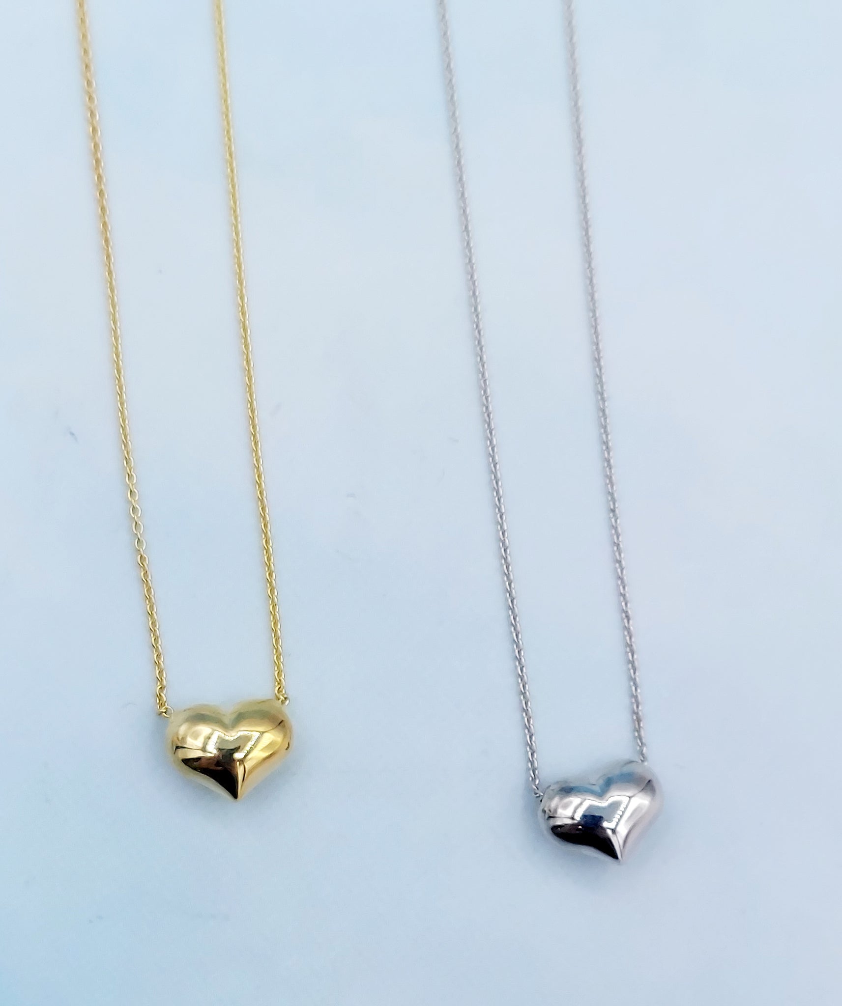 Puffy Heart Adjustable Necklace - 14K White or Yellow Gold