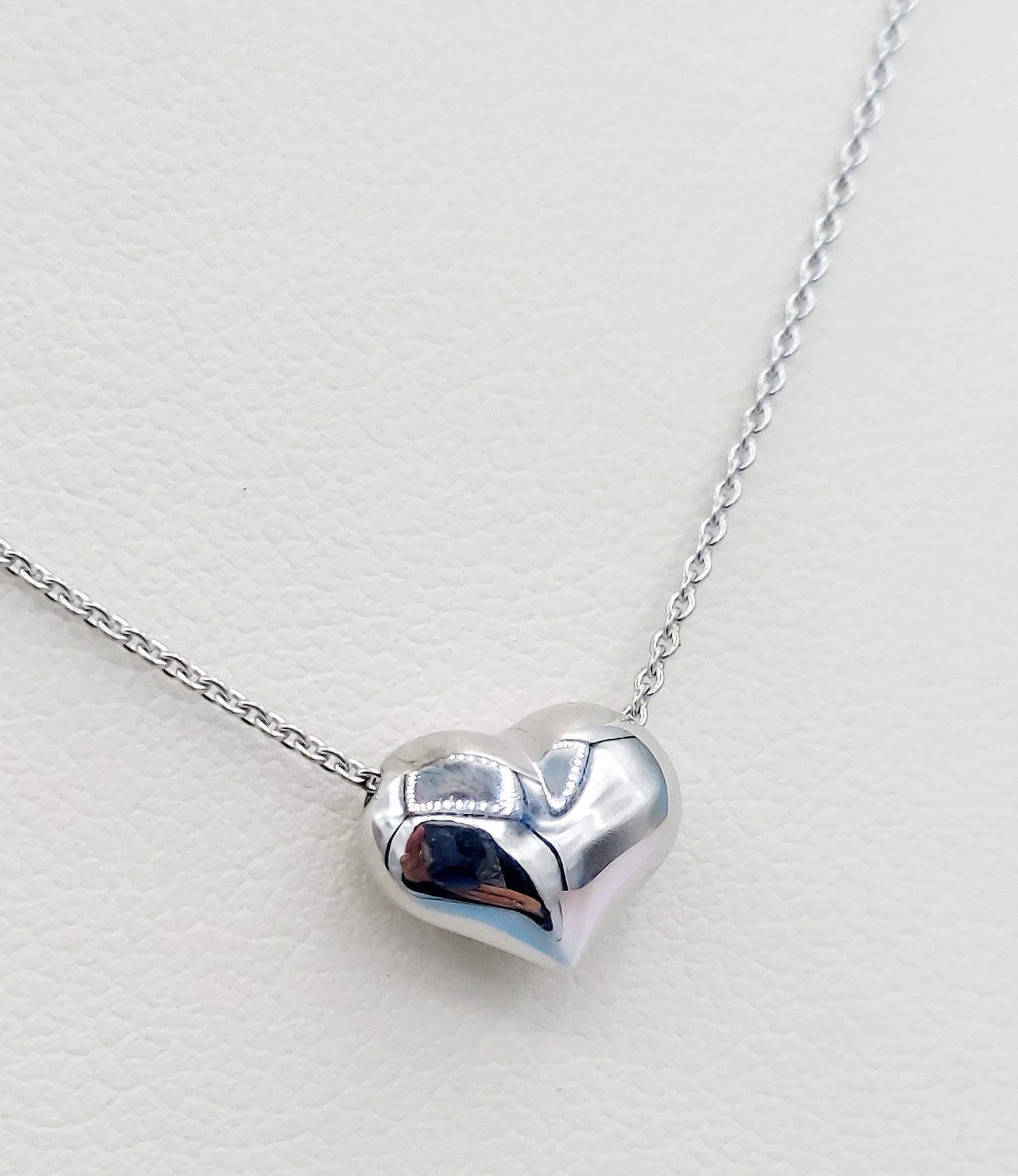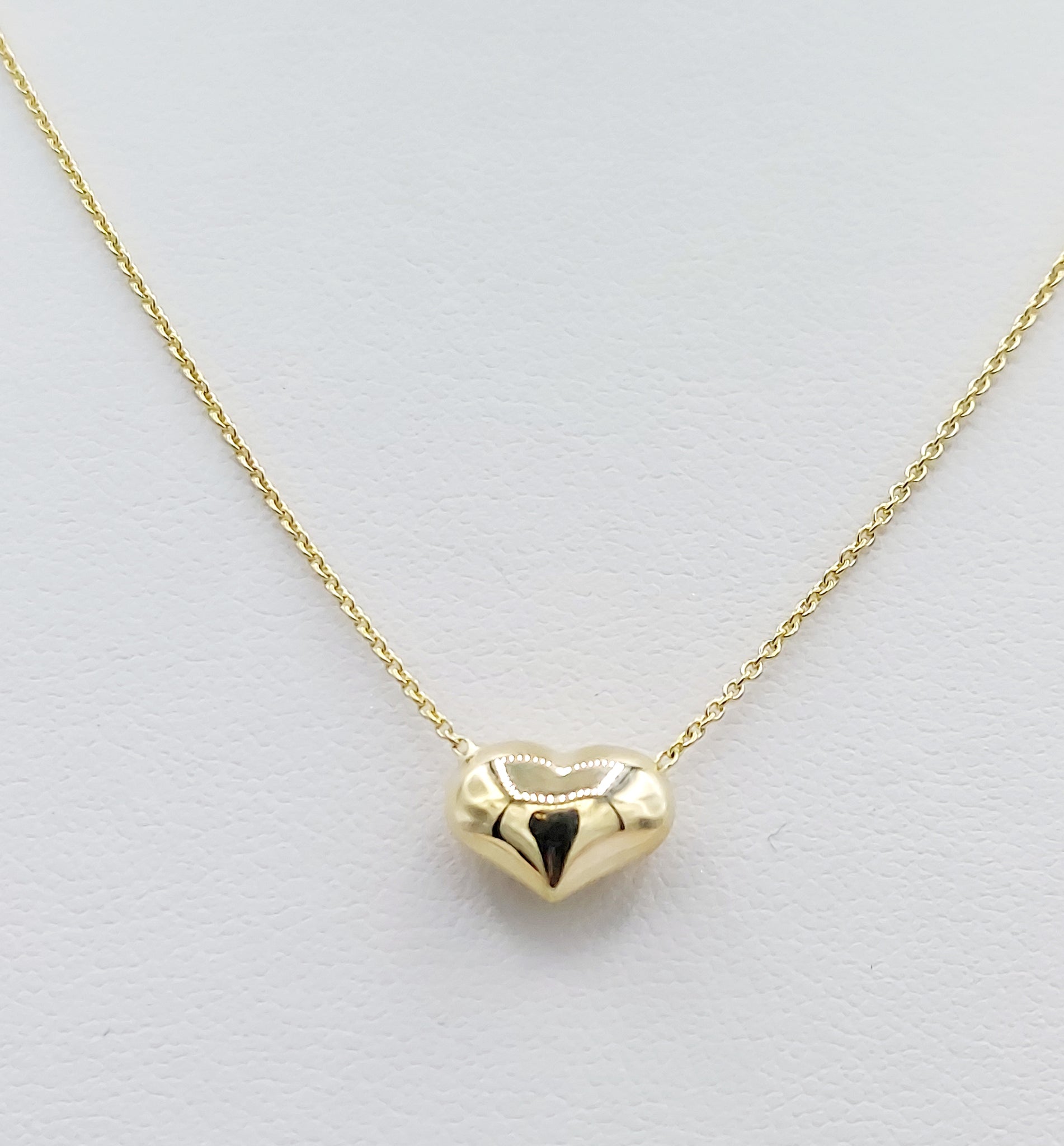 This piece exudes chicness and class. Feel the charm of this polished puffy heart necklace.Â