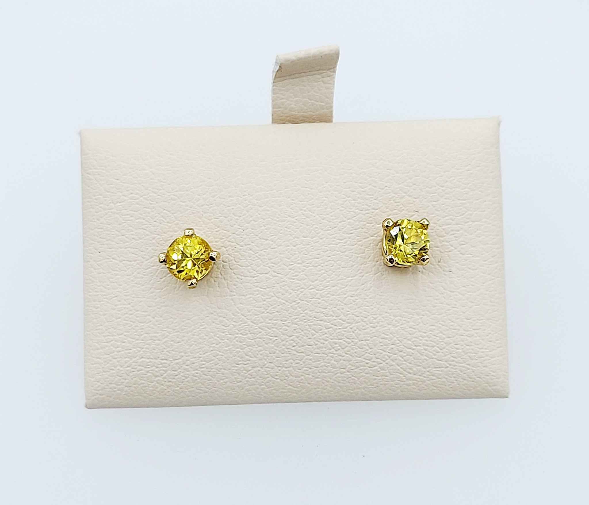 Yellow CZ Stud Earrings - 14K Yellow Gold